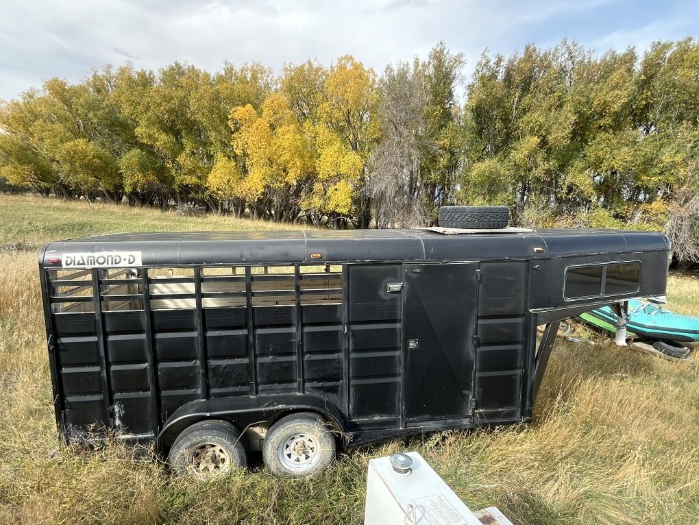 1998 Diamond D horse trailer. Three horse stock back with tack room, tires are new-less than 500 miles on them. Axels in great shape. Wiring was replaced about two years ago, sanded and repainted to protect from rust, skylight in tack is broken but covered temporarily. Great trailer $6,000 obo