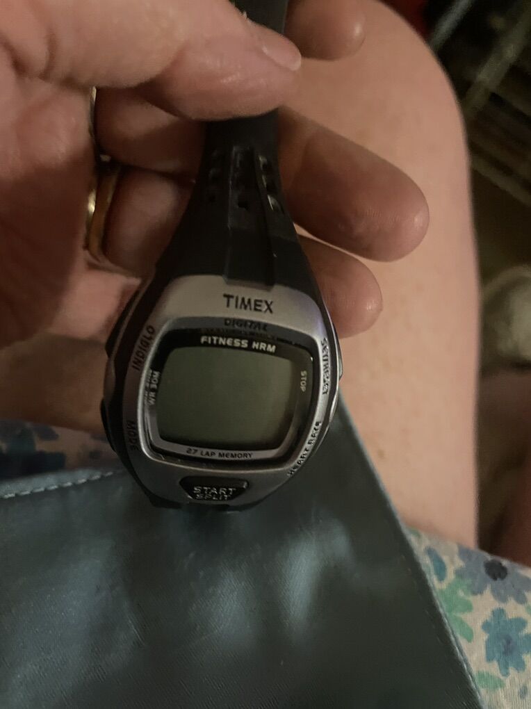 This is a Times Marathon Digital fitness Watch. It just needs a new battery. Digital display timer, Heart Rate Monitor f Fitness functions, Black Rubber Plastic strap.