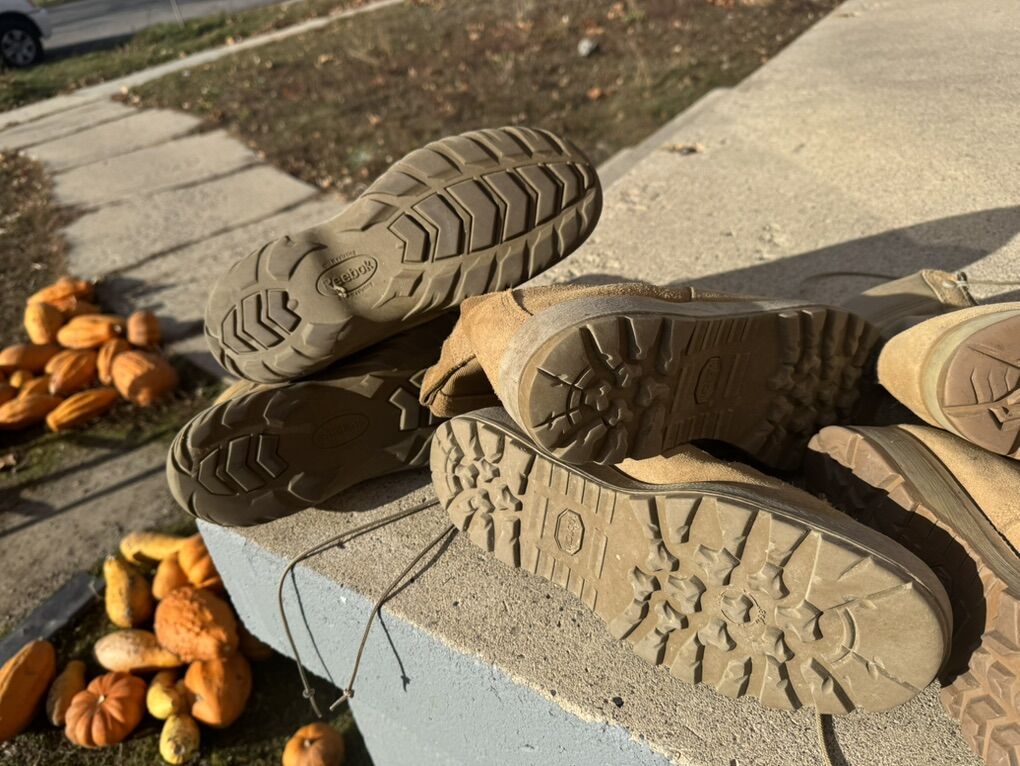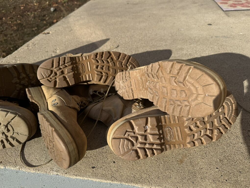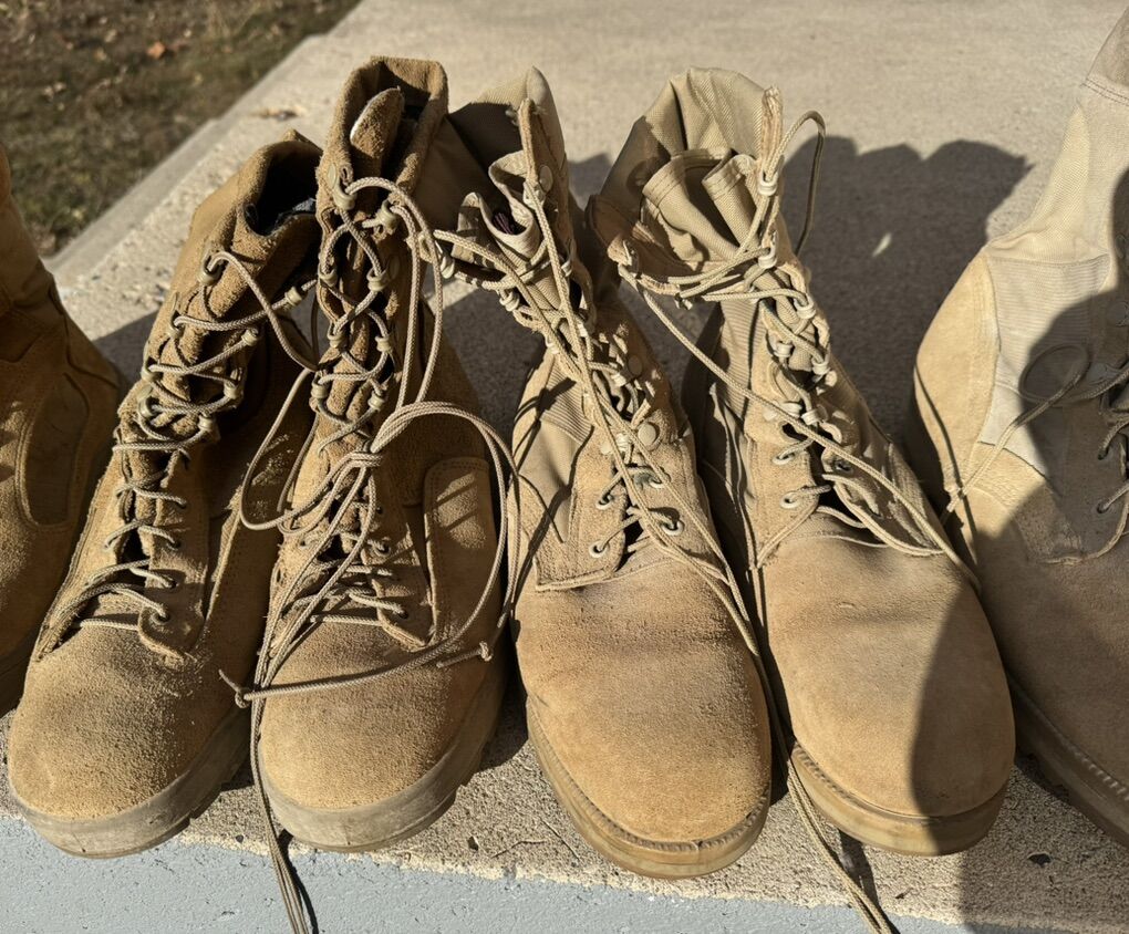 Belleville/Military 3-Pair Boots for Men. Sizes: 9 1/2R, 10.5R, and 11R Four pairs of military-style work boots for sale. They are in perfect condition. Sizes: 9.5 R, 10.5R, and 11R $40 per pair I accept cash or Venmo. Only The price is firm and non-negotiable. No offers will be accepted.
