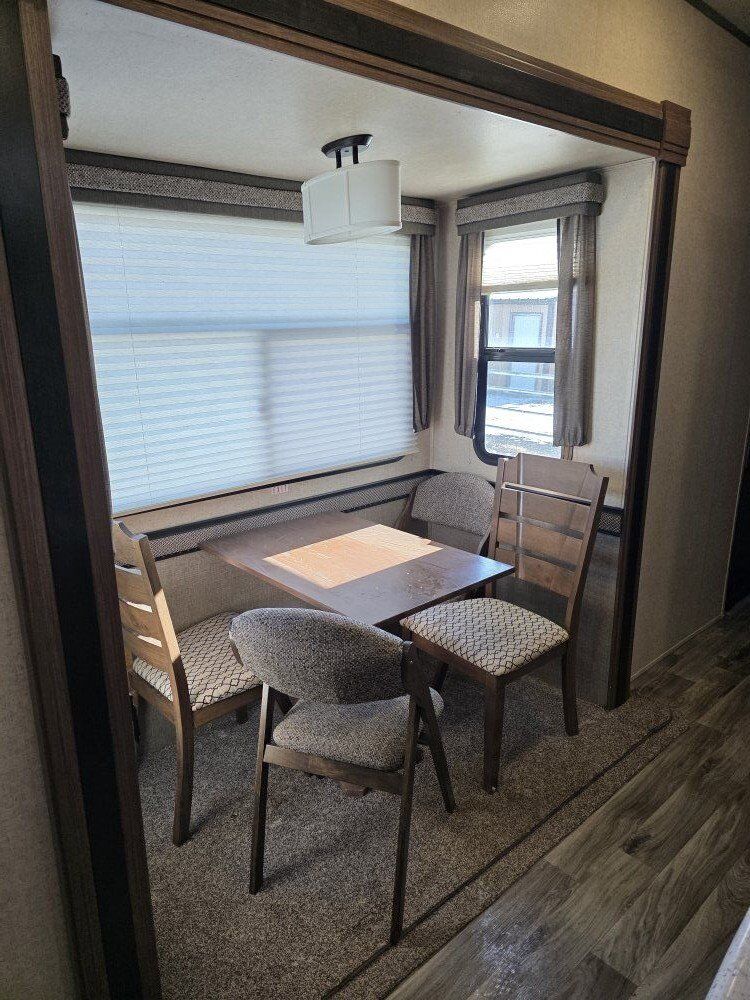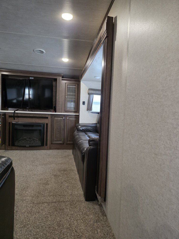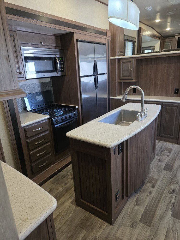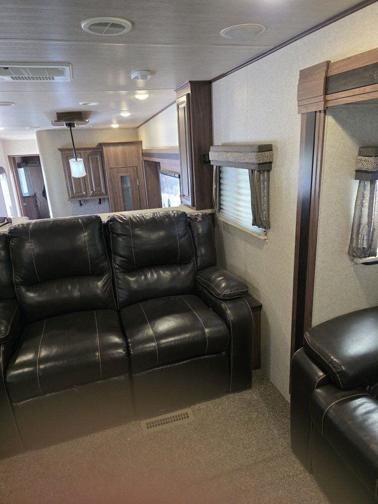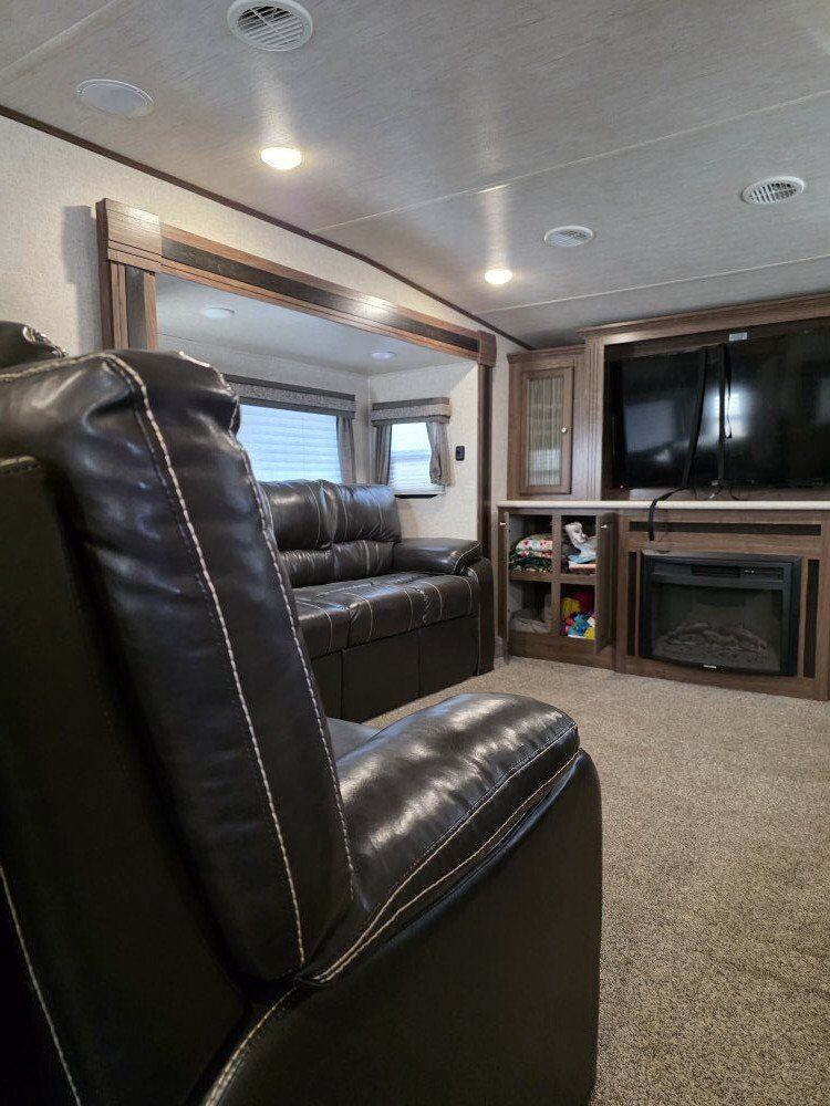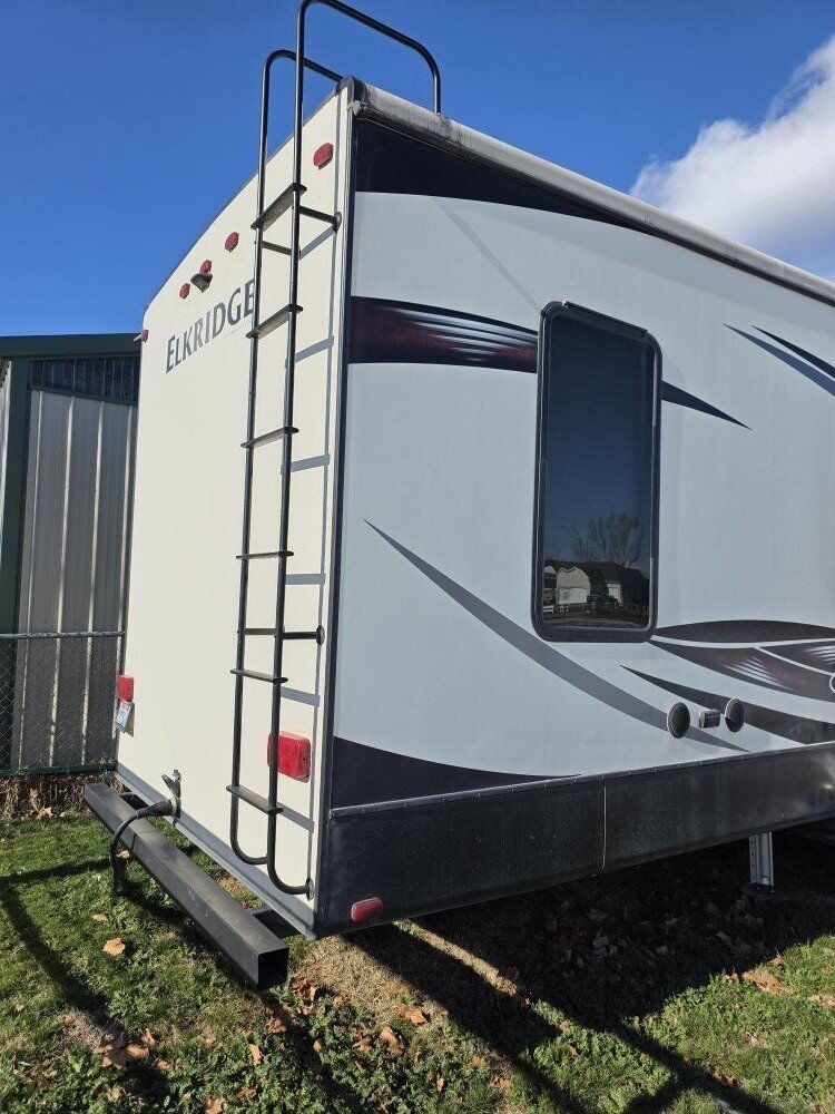 This is a used 2017 40 foot Elkridge by Heartland fifth wheel camper trailer. It is in great condition and has less than 5000 miles on it. It was used up at our property for the summer. Then, put away for winter. We have had no issues with it.
