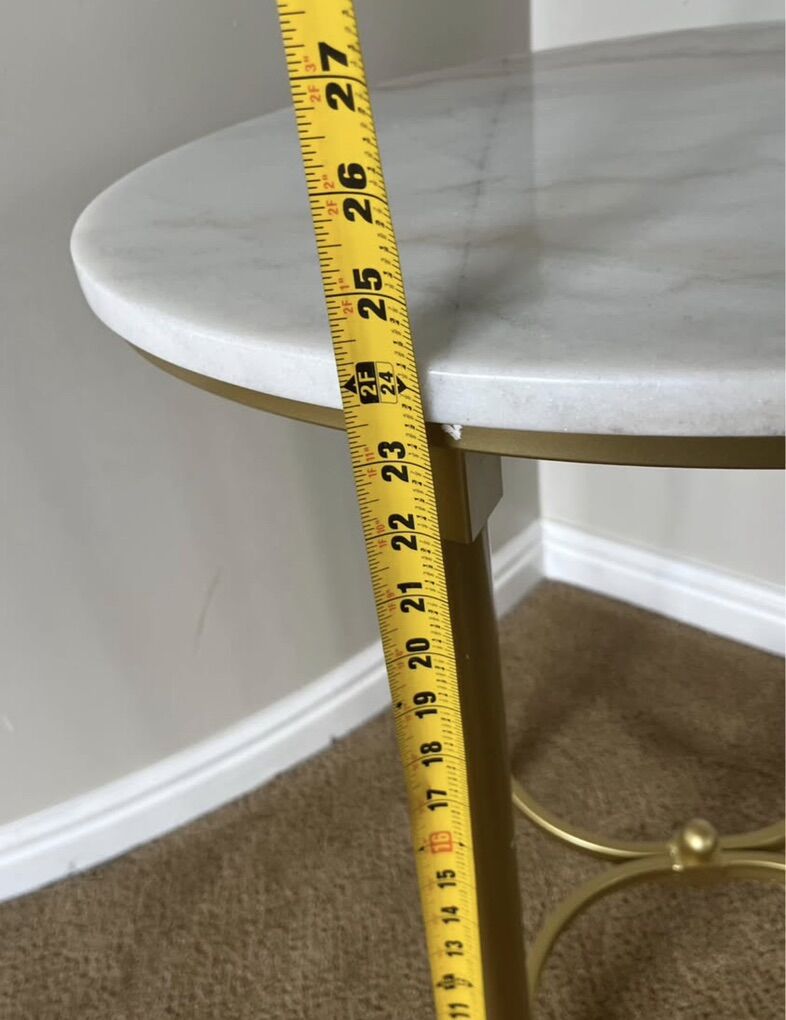 Bordeaux Oval Marble End Table – White Top with Gold Base.