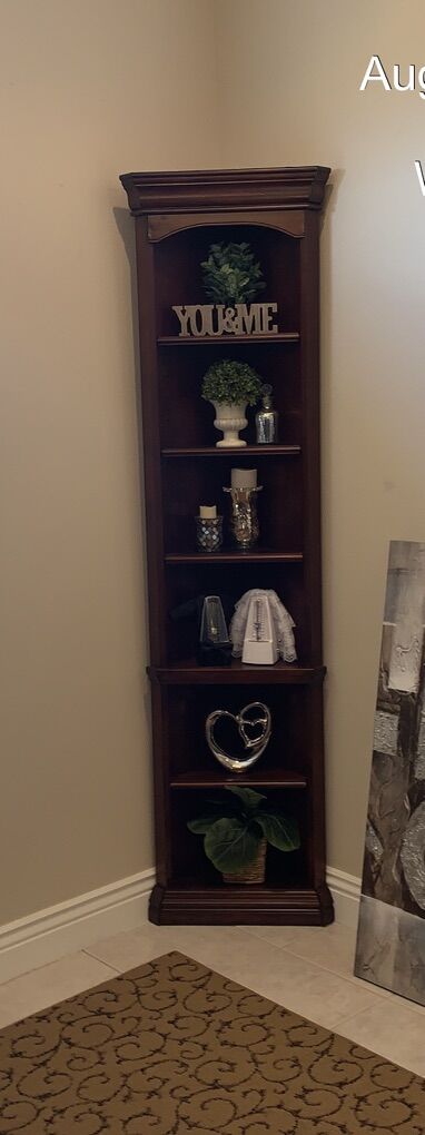 VenmoThis elegant piece is a rich dark color and has a sensory touch light feature. It measures about 16” out from each corner and is 86” tall. This is a beautiful statement piece!