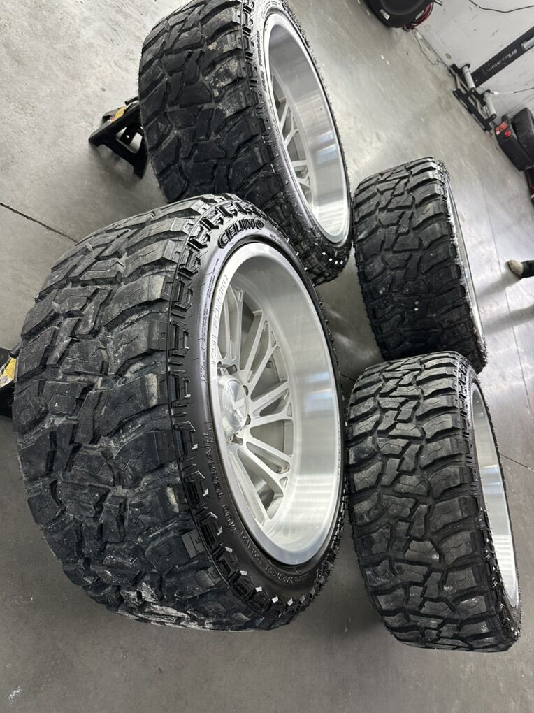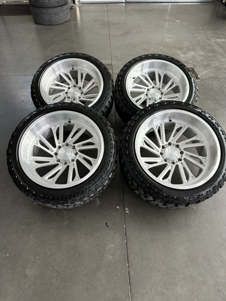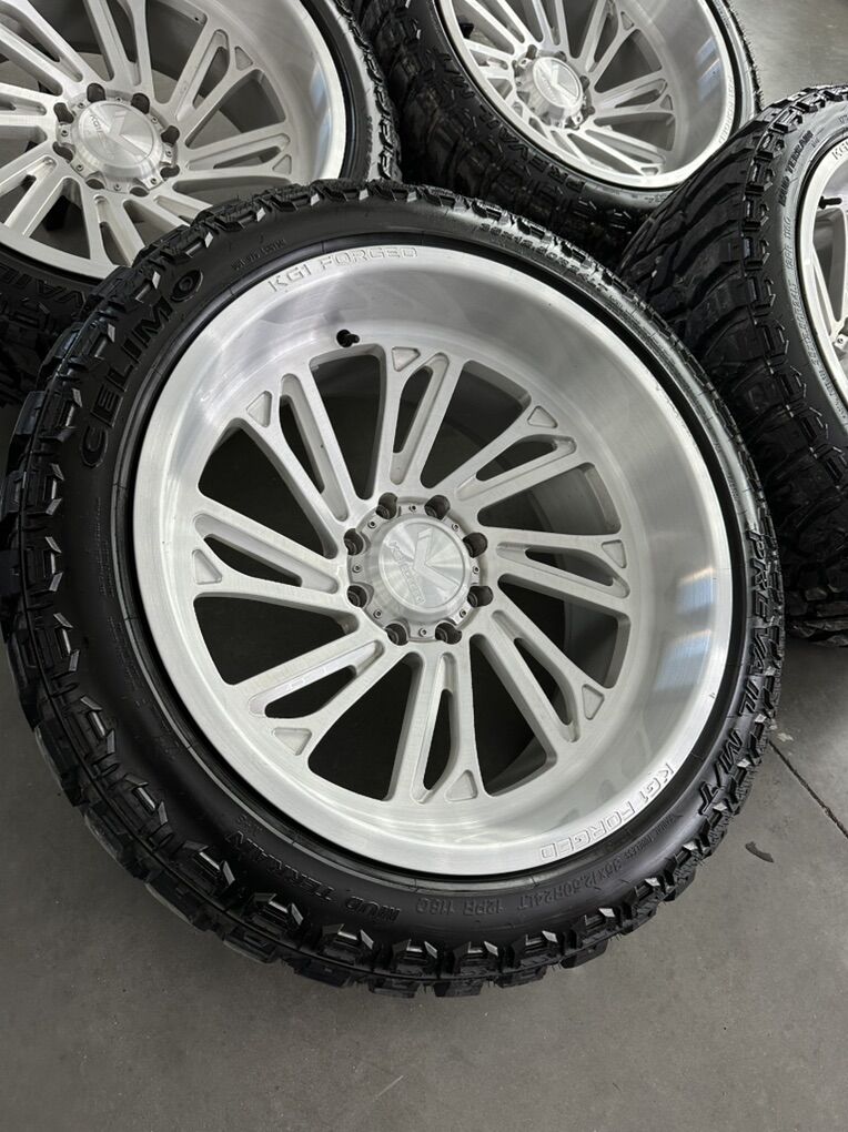 ZelleLIKE NEW LESS THEN 3k MILES 24x12 kg1 forged “rebels” brushed finish 35x12.50r24 prevail m/t tires