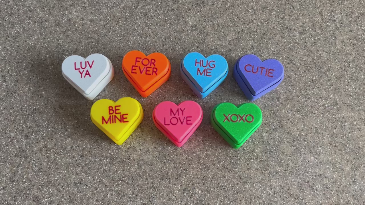 Looking for a unique, non-candy Valentine's gift? These 3D printed Conversation Heart Clickers are the ultimate desk toy and sensory fidget! Clicker is included