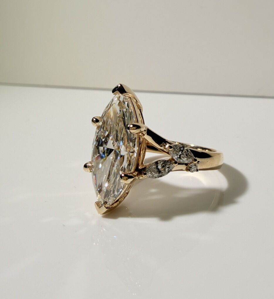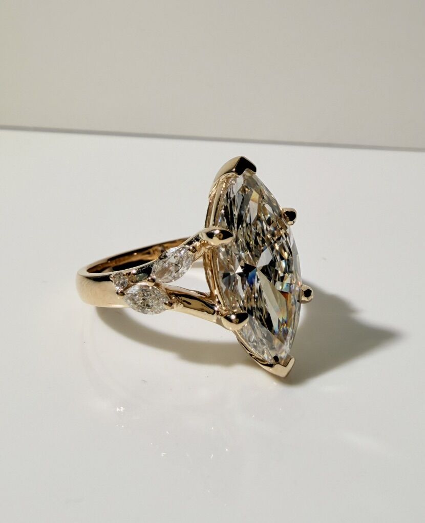 4.05 Carats (Main Stone) Marquee Cut Lab Grown Diamond Ring.