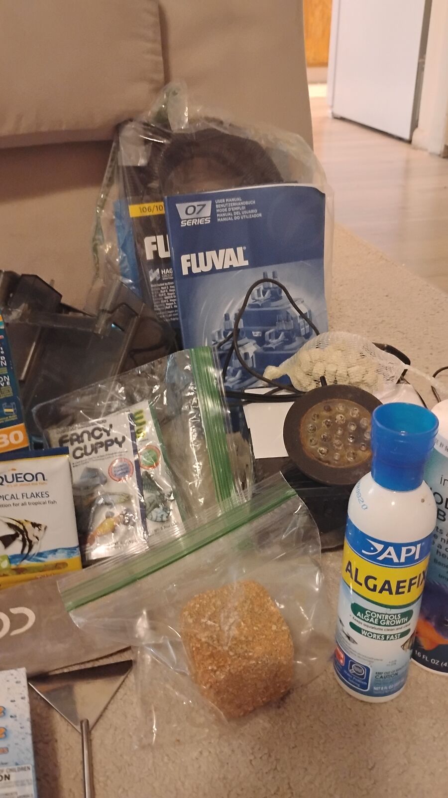 Used 20 Gallon fish tank with many supplies. Price is $200 OBO. Used 107 Fluvel fish tank canister filter. NIB 20-gallon fish tank stand. Expired fish food of all kinds. Expired water conditioning chemicals. A variety of used decorations. Used gravel siphon. New water testing kit. Used fish nets. Used air-pump with a multi-colored light bubbling device. I accept cash and Zelle. Please communicate through Messages and text.