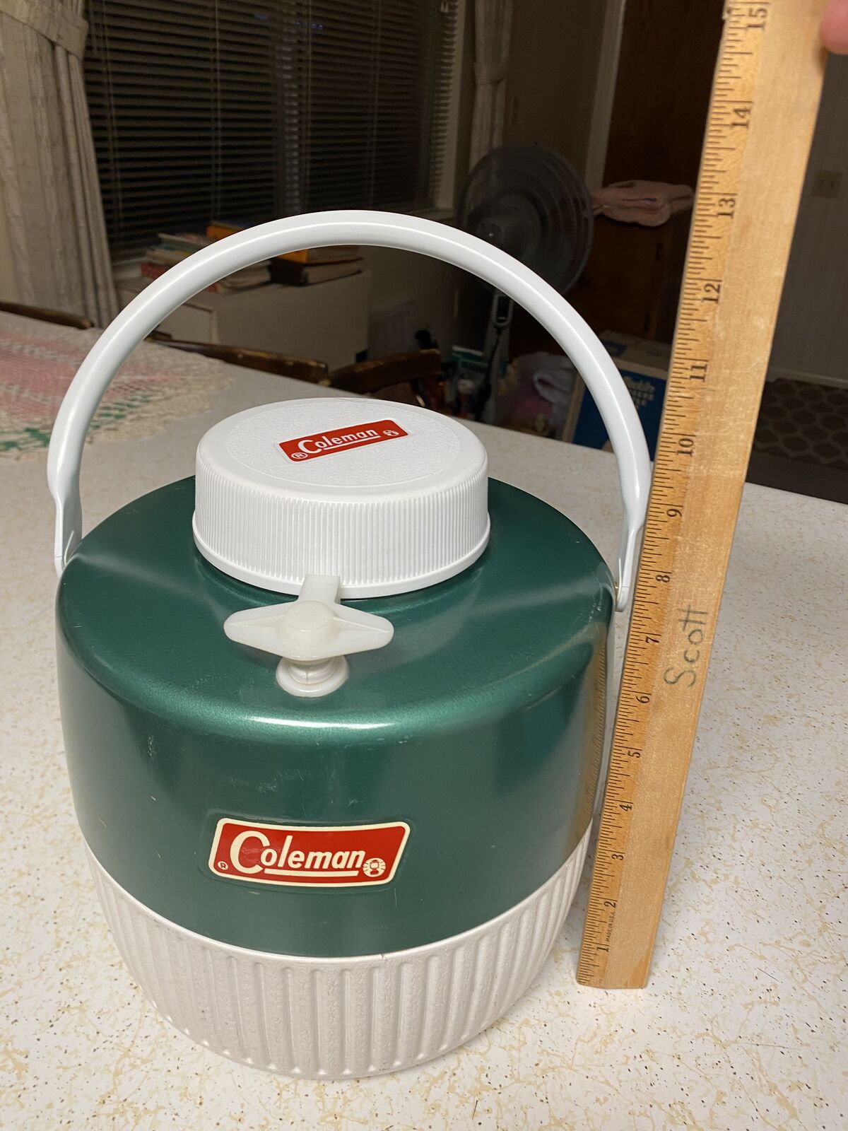 1 gallon green Coleman jug, complete with cup. Comes with a pour top, not the usual push dispenser. FCFS. Cash only. Thanks for looking!