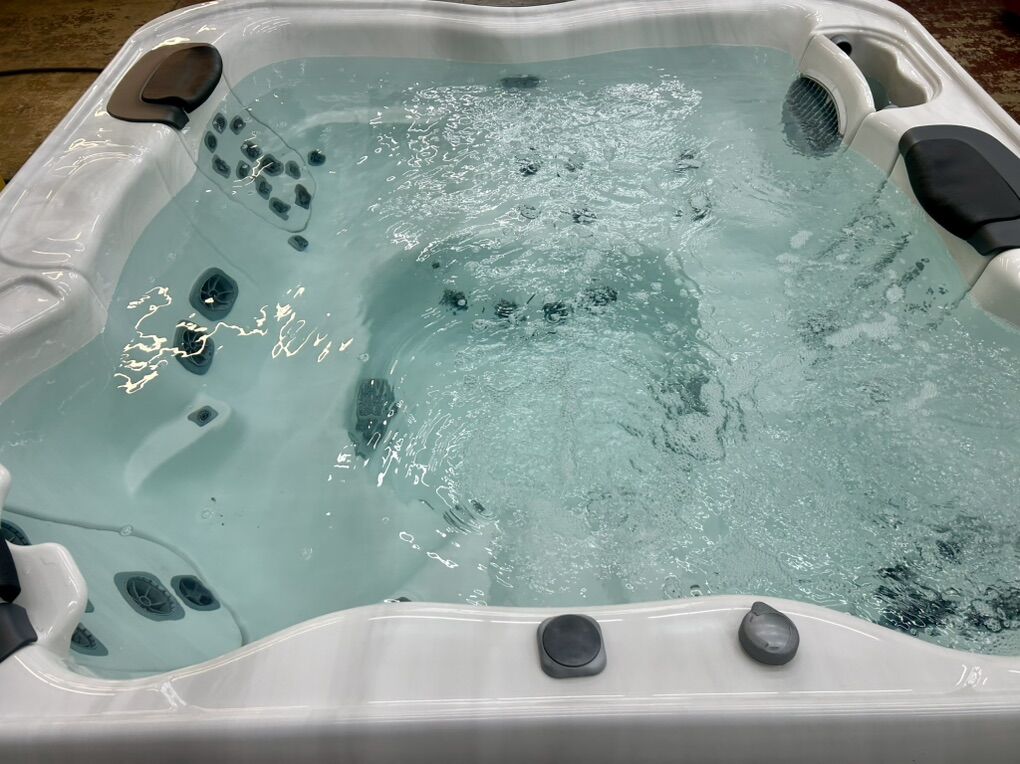 Bullfrog hot tub fits 7 people with tons of jets LED light pop-up waterfall. The spa has been fully refurbished and gone over everything works and functions as it should backed by a 90 day warranty. Spa includes cover / steps and FREE delivery within 70 miles
