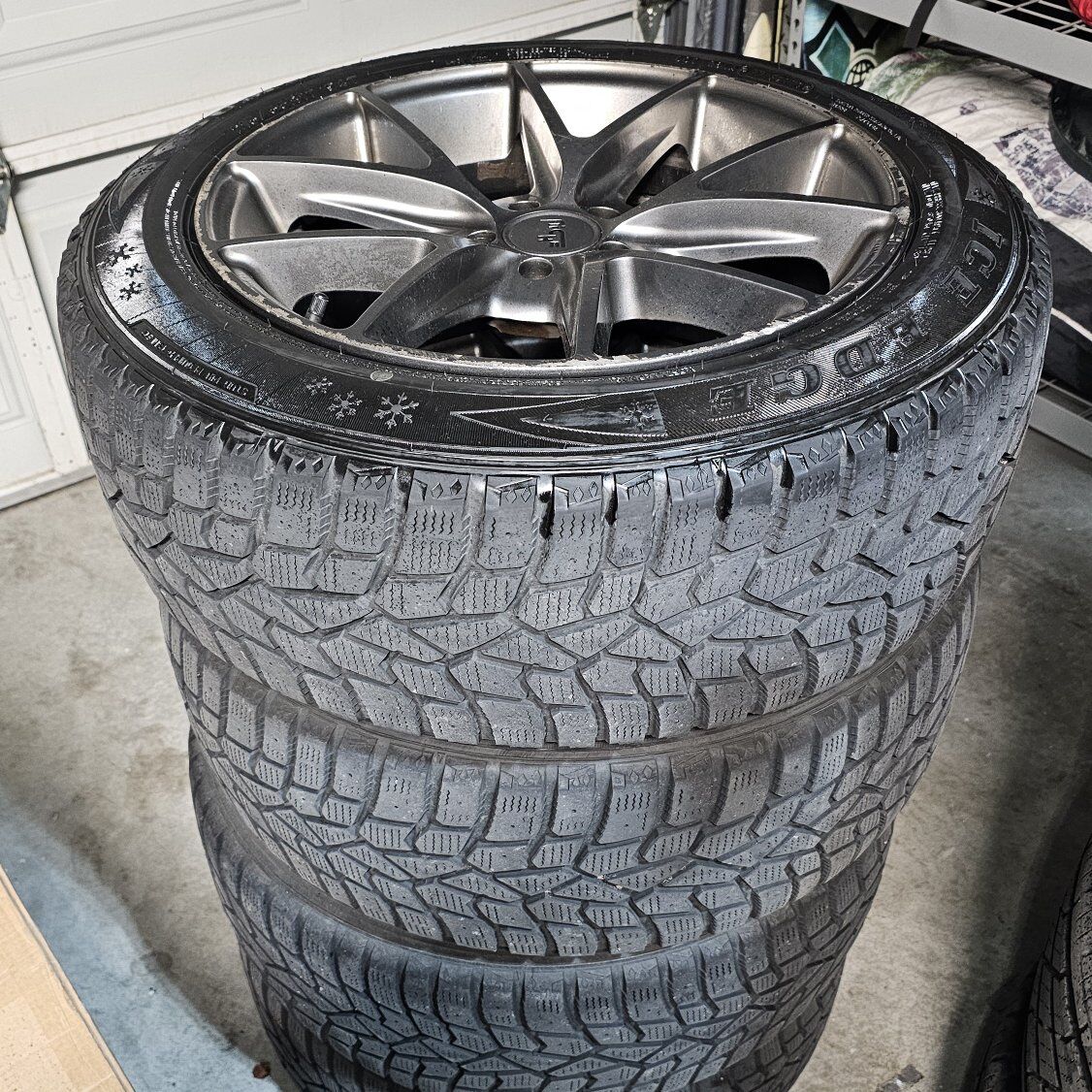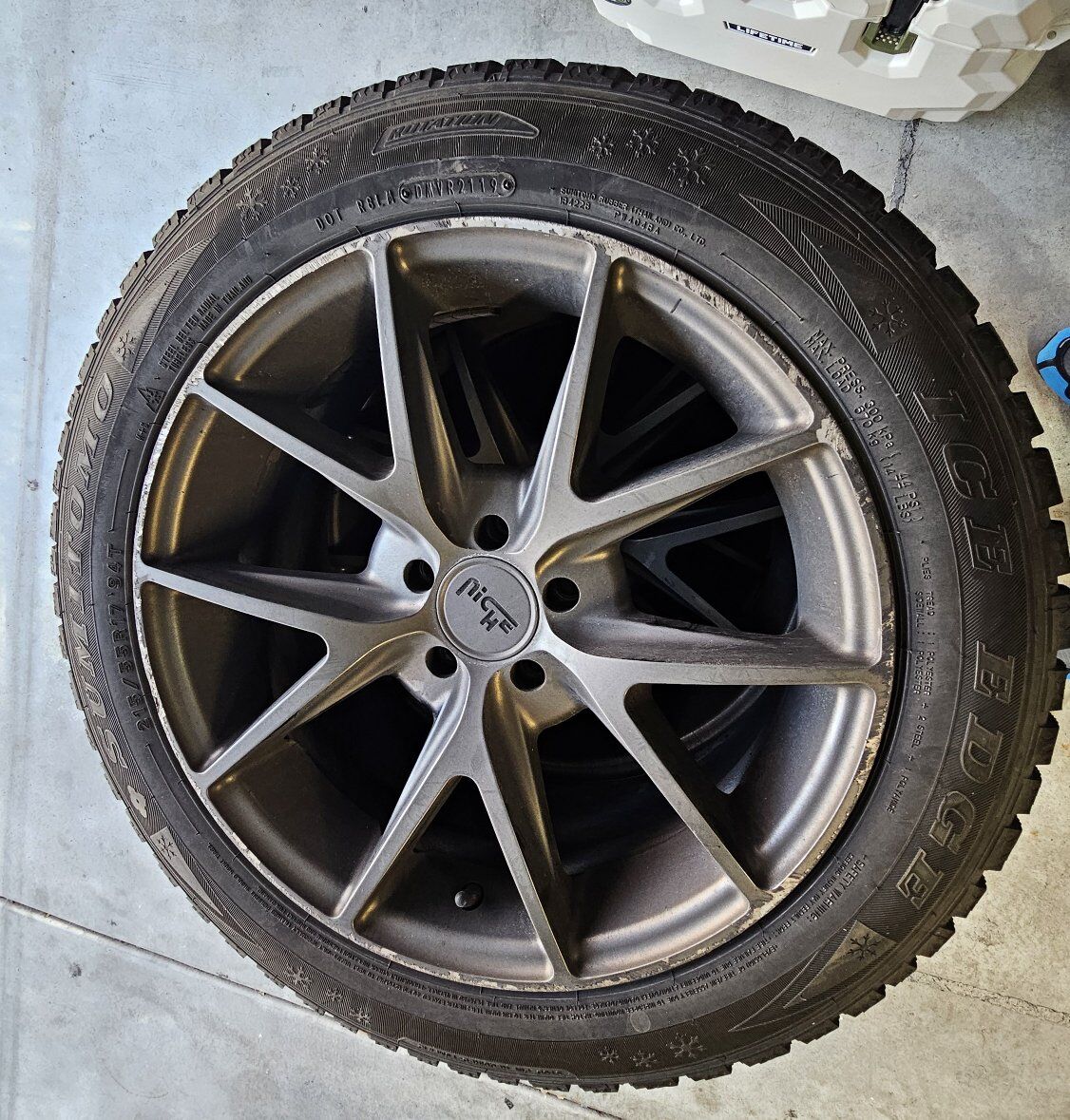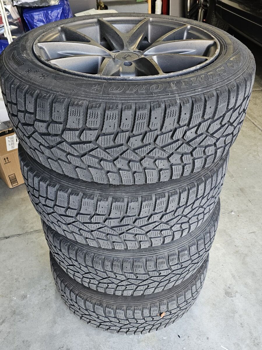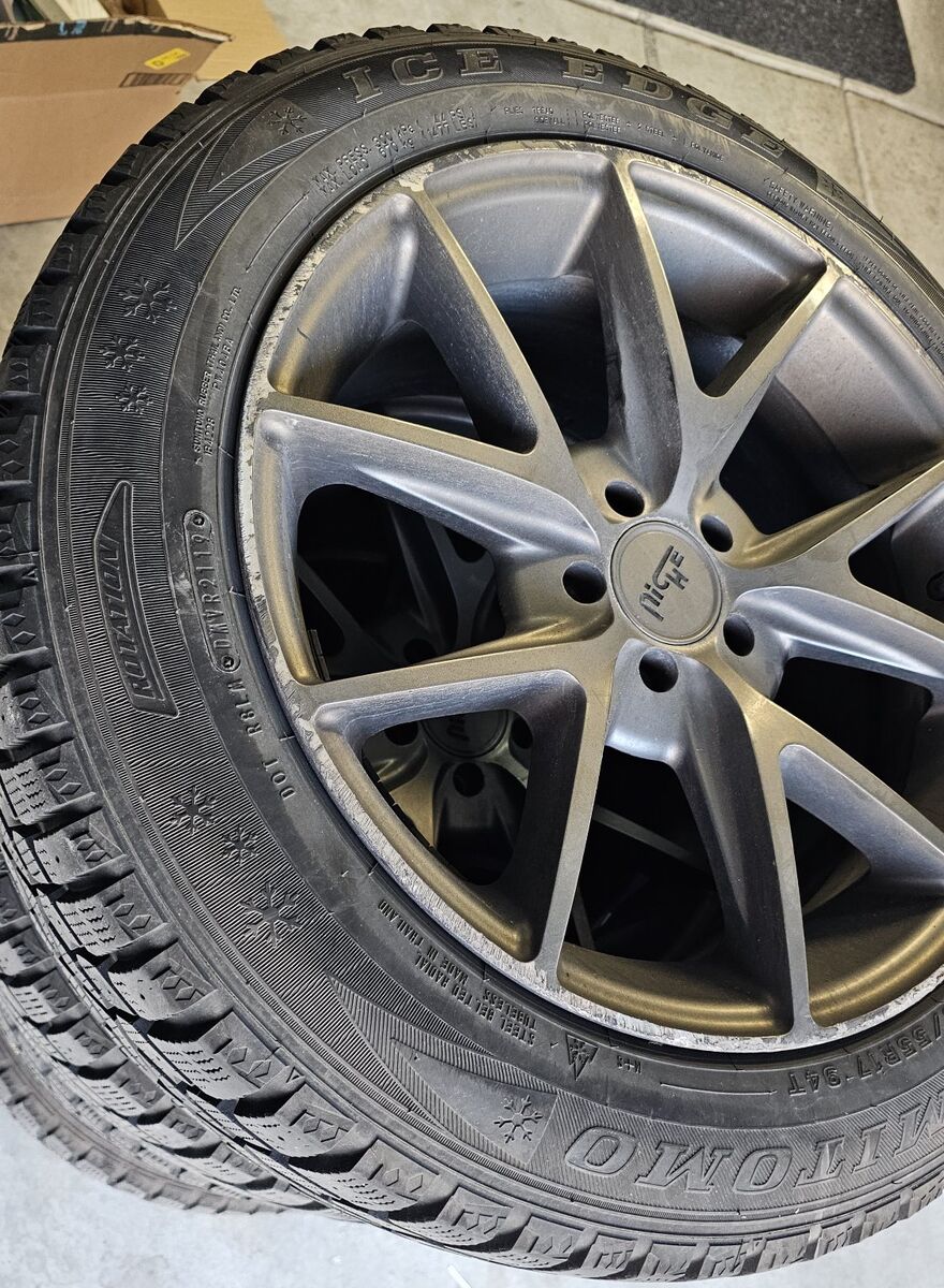 Venmo$450 OBO - Niche Road Wheels Misano Matte Gunmetal 17" wheels for Volkswagen Golf, New Beetle, etc . 7.5Jx17 ET38 5x100 Center Bore / Hub Bore: 57.1 mm with Sumitomo Ice Edge Studless Winter tires. Tons of tread, fantastic tires. wheels have a little curb rash.