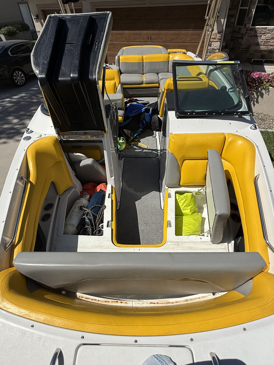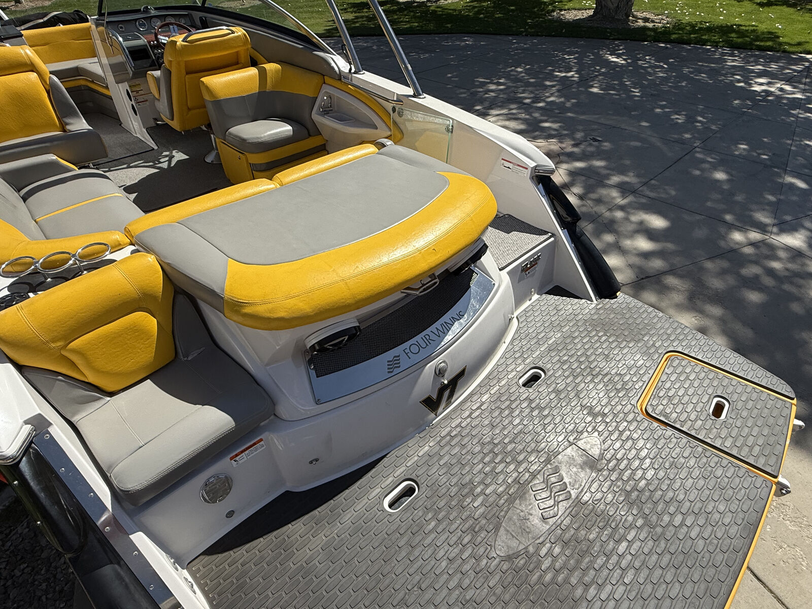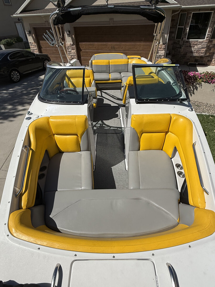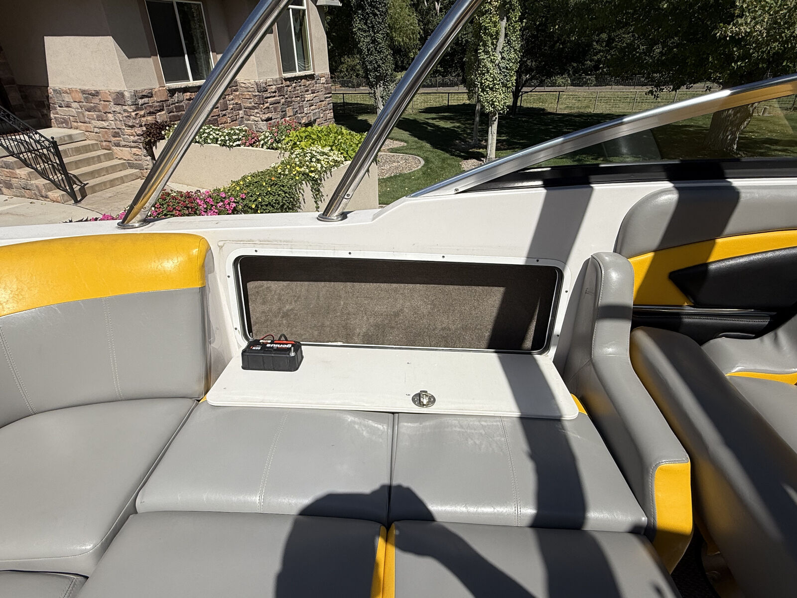 We LOVE this boat. Boating is our favorite thing to do as a family. The only reason we are selling is due to our LARGE family (kids getting married, now we have grandkids) needing more seating room. 27.5 ft. boat with an 8.1L V8 Volvo Penta that has 772.3 engine hours. (may increase based on sale date) Upper and lower outdrive gearing were recently replaced on recommendation from our mechanic. The boat is equipped with 3 LARGE batteries and a battery tender to make storage and upkeep very simple. The boat is great for any tow sport: wakeboarding, waterskiing, tubing, etc Plenty of power from the 8.1L V8 even at high-altitude lakes such as Flaming Gorge. Never had to use ballast bags. The boat is big enough and heavy enough that it creates a killer wake on its own. This also allows you to not worry about wasting storage room and makes cleaning for Lake Powell that much easier. Upgrades: Installed a full Wet Sounds audio system about 3 years ago. Installed additional audio controls at the back (aft) of the boat for passenger enjoyment. Upholstery was redone throughout the entire interior at the same time the audio was installed. We have enjoyed features such as the giant swim deck allowing 4 or more people to hang on without sinking, easy access to coolers without making someone get out of their seat, tons of storage space throughout the boat, and walkways to avoid having to climb over seats.