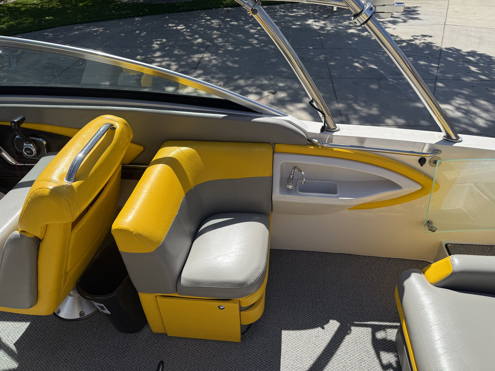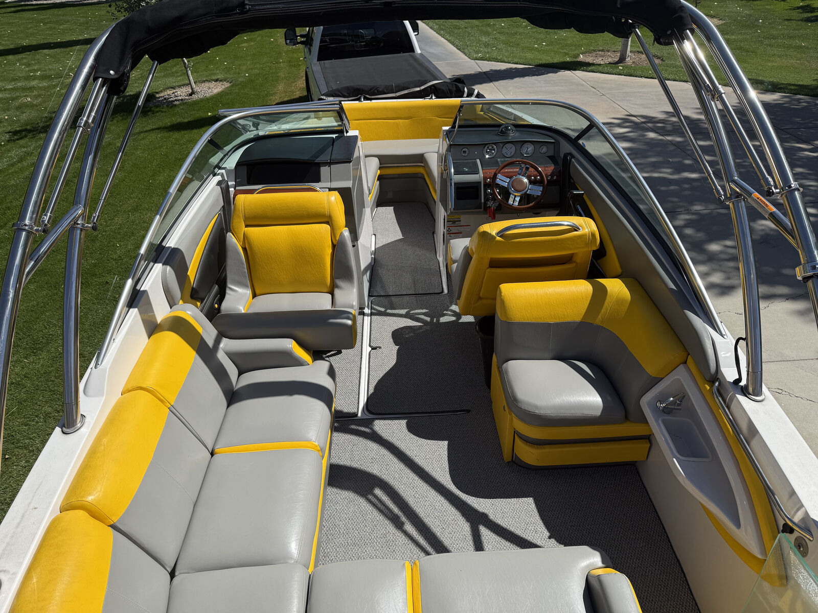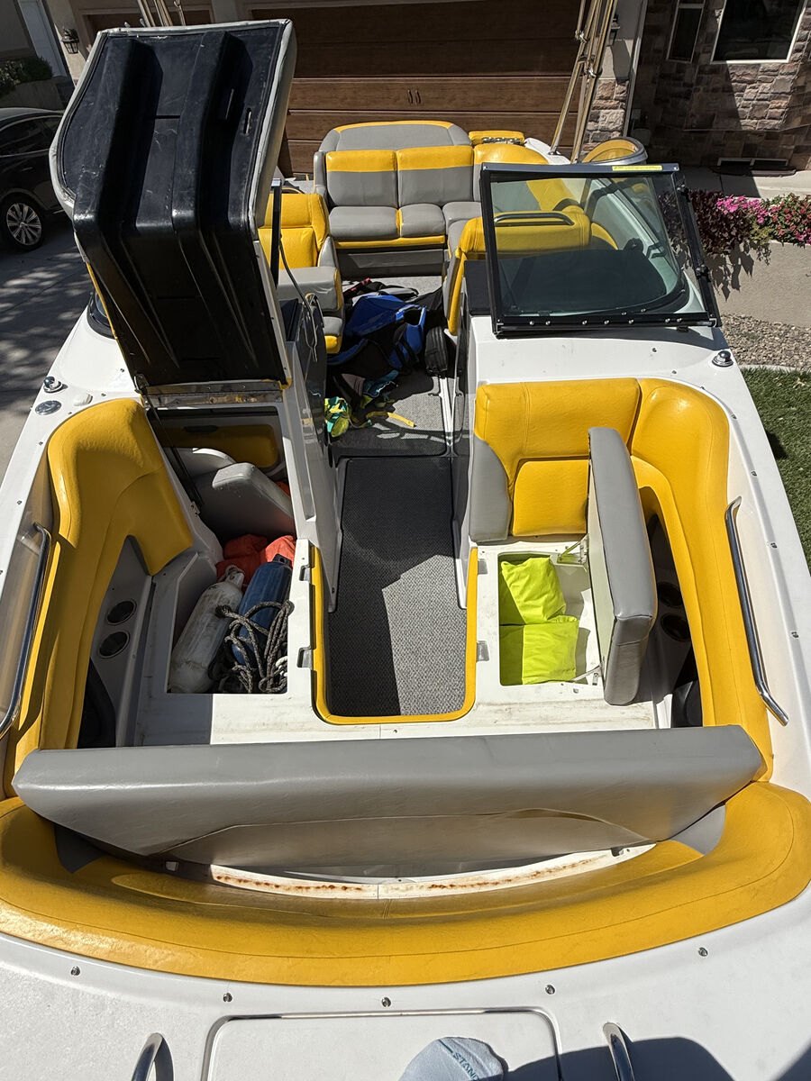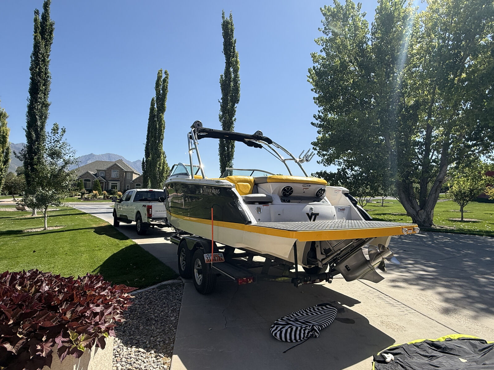 We LOVE this boat. Boating is our favorite thing to do as a family. The only reason we are selling is due to our LARGE family (kids getting married, now we have grandkids) needing more seating room. 27.5 ft. boat with an 8.1L V8 Volvo Penta that has 772.3 engine hours. (may increase based on sale date) Upper and lower outdrive gearing were recently replaced on recommendation from our mechanic. The boat is equipped with 3 LARGE batteries and a battery tender to make storage and upkeep very simple. The boat is great for any tow sport: wakeboarding, waterskiing, tubing, etc Plenty of power from the 8.1L V8 even at high-altitude lakes such as Flaming Gorge. Never had to use ballast bags. The boat is big enough and heavy enough that it creates a killer wake on its own. This also allows you to not worry about wasting storage room and makes cleaning for Lake Powell that much easier. Upgrades: Installed a full Wet Sounds audio system about 3 years ago. Installed additional audio controls at the back (aft) of the boat for passenger enjoyment. Upholstery was redone throughout the entire interior at the same time the audio was installed. We have enjoyed features such as the giant swim deck allowing 4 or more people to hang on without sinking, easy access to coolers without making someone get out of their seat, tons of storage space throughout the boat, and walkways to avoid having to climb over seats.