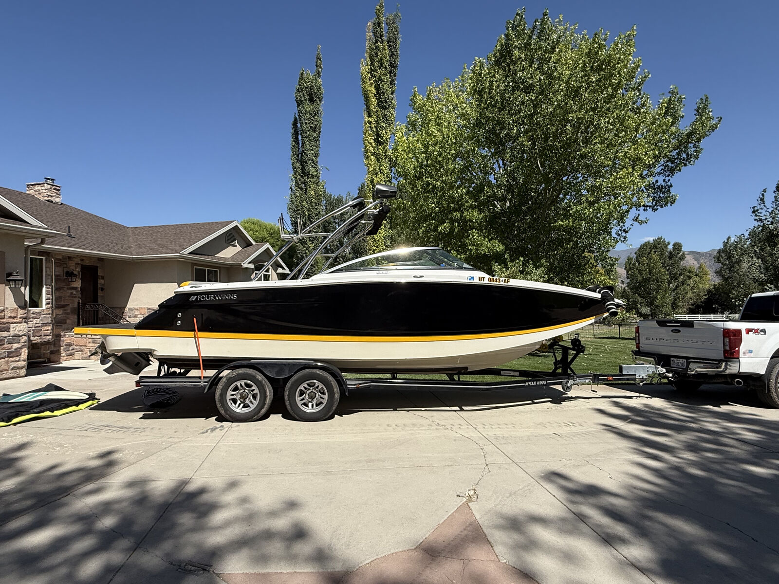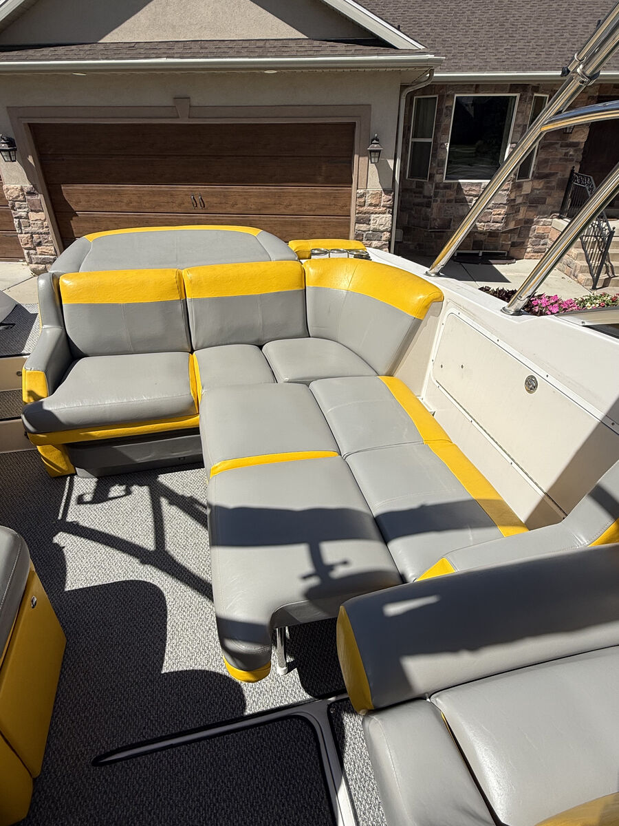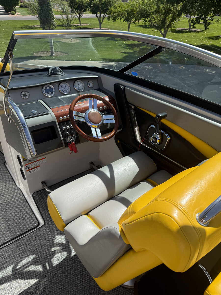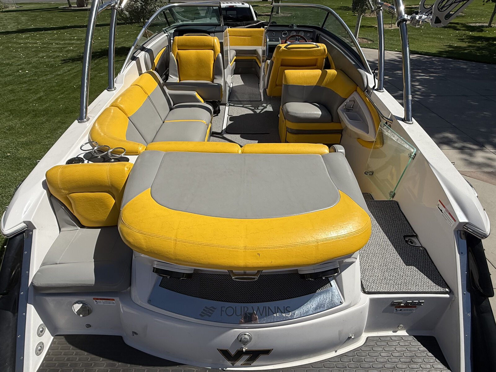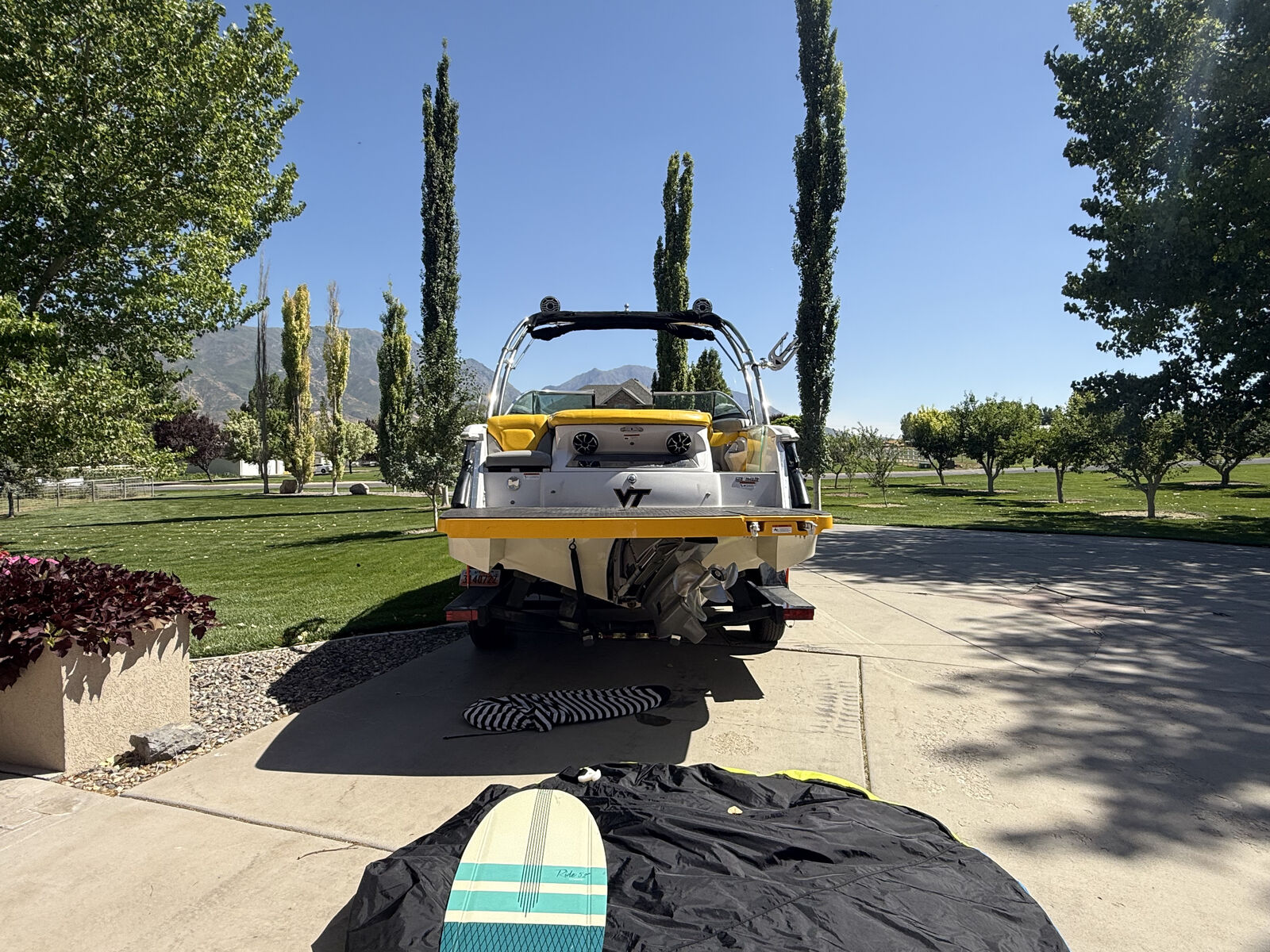 We LOVE this boat. Boating is our favorite thing to do as a family. The only reason we are selling is due to our LARGE family (kids getting married, now we have grandkids) needing more seating room. 27.5 ft. boat with an 8.1L V8 Volvo Penta that has 772.3 engine hours. (may increase based on sale date) Upper and lower outdrive gearing were recently replaced on recommendation from our mechanic. The boat is equipped with 3 LARGE batteries and a battery tender to make storage and upkeep very simple. The boat is great for any tow sport: wakeboarding, waterskiing, tubing, etc Plenty of power from the 8.1L V8 even at high-altitude lakes such as Flaming Gorge. Never had to use ballast bags. The boat is big enough and heavy enough that it creates a killer wake on its own. This also allows you to not worry about wasting storage room and makes cleaning for Lake Powell that much easier. Upgrades: Installed a full Wet Sounds audio system about 3 years ago. Installed additional audio controls at the back (aft) of the boat for passenger enjoyment. Upholstery was redone throughout the entire interior at the same time the audio was installed. We have enjoyed features such as the giant swim deck allowing 4 or more people to hang on without sinking, easy access to coolers without making someone get out of their seat, tons of storage space throughout the boat, and walkways to avoid having to climb over seats.