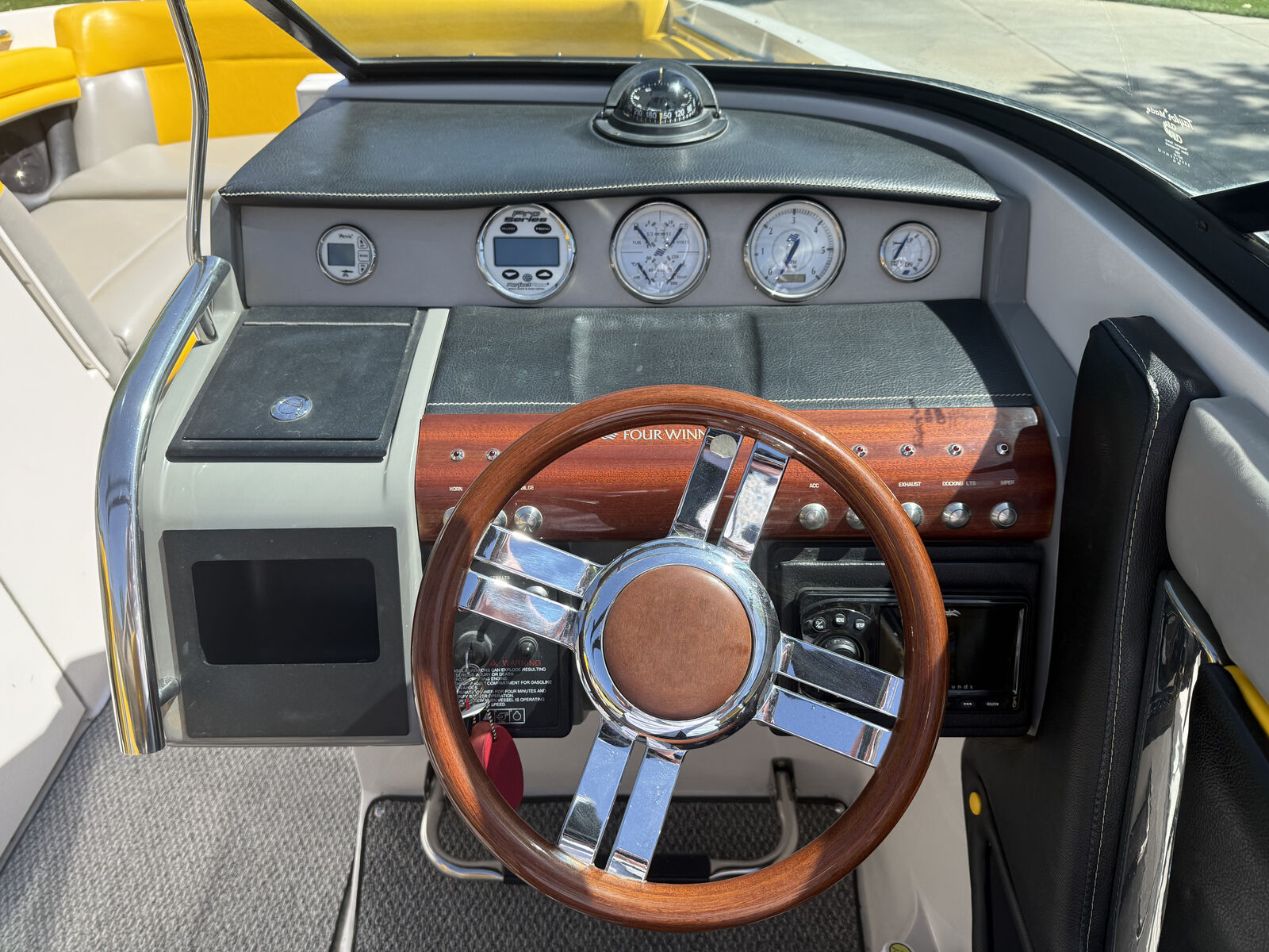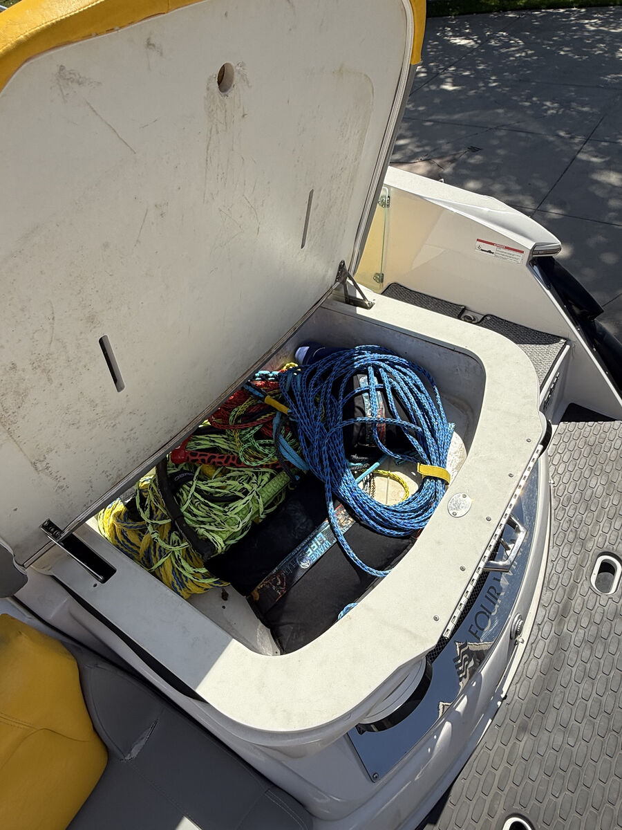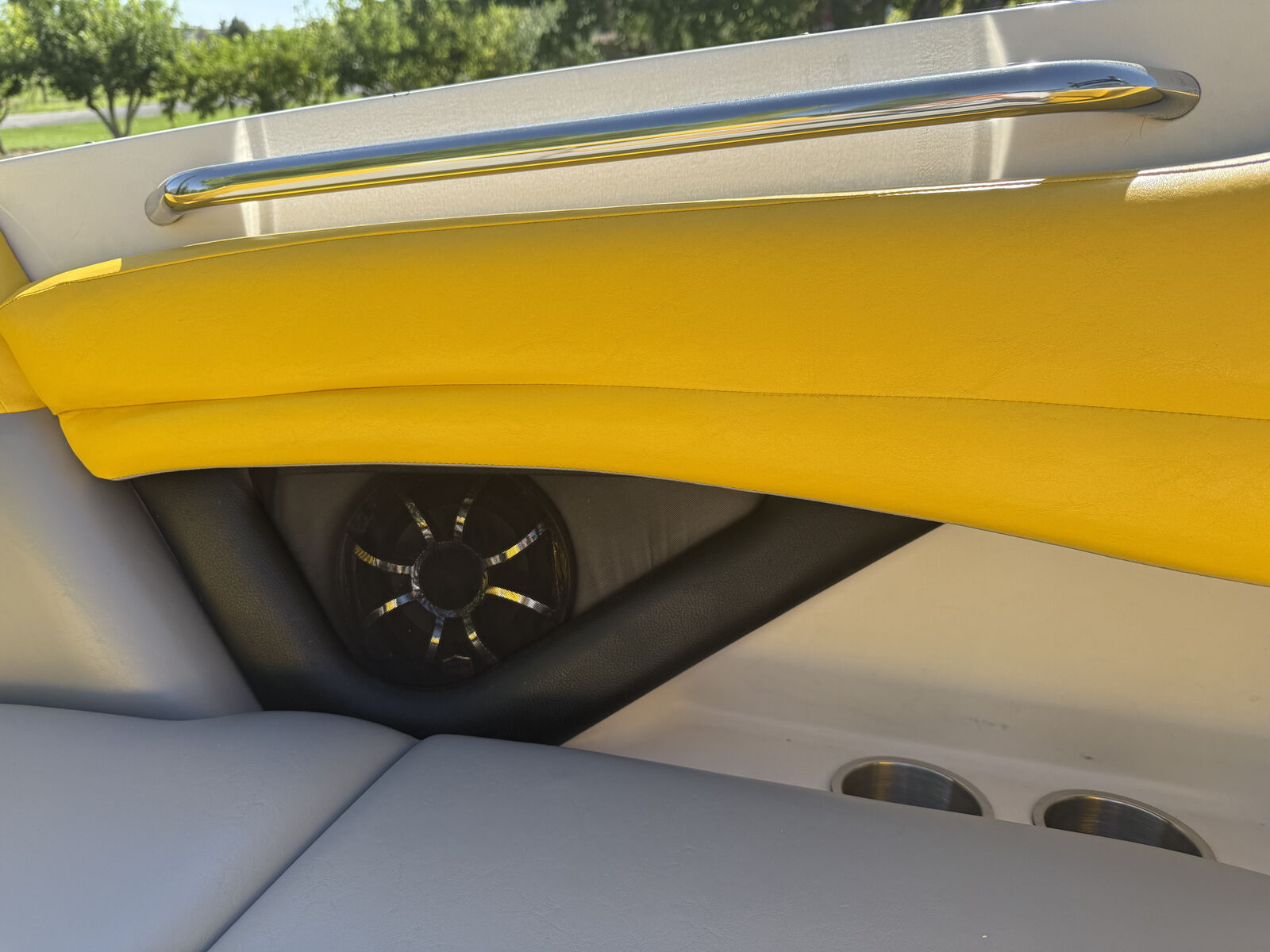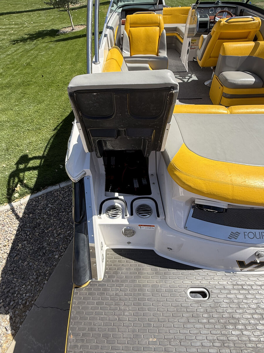 We LOVE this boat. Boating is our favorite thing to do as a family. The only reason we are selling is due to our LARGE family (kids getting married, now we have grandkids) needing more seating room. 27.5 ft. boat with an 8.1L V8 Volvo Penta that has 772.3 engine hours. (may increase based on sale date) Upper and lower outdrive gearing were recently replaced on recommendation from our mechanic. The boat is equipped with 3 LARGE batteries and a battery tender to make storage and upkeep very simple. The boat is great for any tow sport: wakeboarding, waterskiing, tubing, etc Plenty of power from the 8.1L V8 even at high-altitude lakes such as Flaming Gorge. Never had to use ballast bags. The boat is big enough and heavy enough that it creates a killer wake on its own. This also allows you to not worry about wasting storage room and makes cleaning for Lake Powell that much easier. Upgrades: Installed a full Wet Sounds audio system about 3 years ago. Installed additional audio controls at the back (aft) of the boat for passenger enjoyment. Upholstery was redone throughout the entire interior at the same time the audio was installed. We have enjoyed features such as the giant swim deck allowing 4 or more people to hang on without sinking, easy access to coolers without making someone get out of their seat, tons of storage space throughout the boat, and walkways to avoid having to climb over seats.