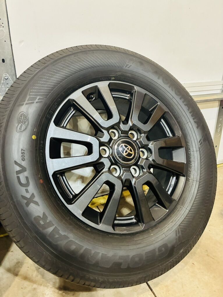 4 Toyota wheels and tires new zero miles! 245 70 R18 Lug nuts included. Need to sale asap Text or call for more info. NO SCAMMERS or emails!
