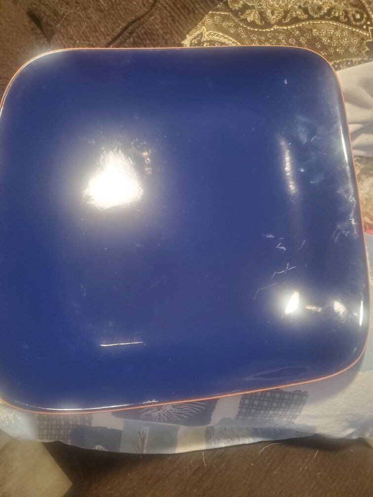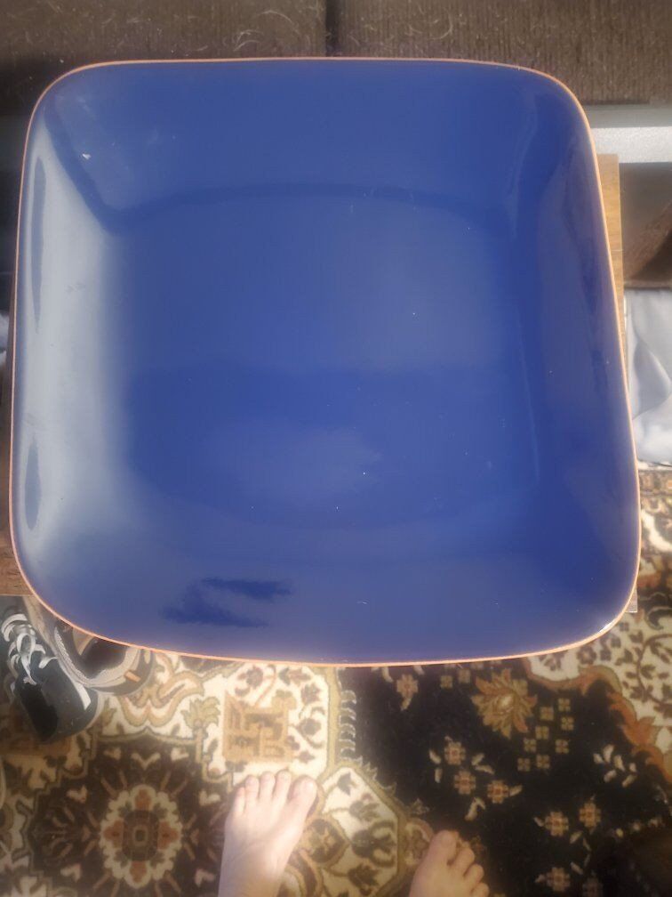 VenmoBeautiful Blue XLG Serving Platter or For Use As Home Decor Made of Terracota Clay Solid & Heavier Platter With No Chips. Fcfs\