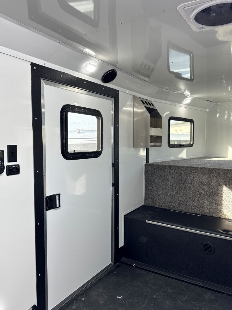 # **2026 LOGAN COACH HORSEPOWER 26' GN** ### **ZBROZ / CHRIS BURANDT BACKCOUNTRY EDITION** **High-End Motorsports Trailer – Built for Deep Snow Riders** *** ## **Key Specs** * **26' Box Length** (Custom shortened from 29’) * **7'6" Box Height** * **8'6" Box Width – Deck Over Fenders** * **Dual Hydraulic Jacks** * **7,000 lb Dexter Torsion Axles** * **22.5° Down Axle Angle** * **Heavy Duty Gooseneck – 8'2" Deck** * **Target Dovetail Clearance: 16"** *** ## **Exterior Features** * **Dark Gray Non-Metallic Front / Charcoal Rear** (Two-Tone) * **Black Finish Treadbrite – Full Length Both Sides** * **Stainless Steel Front Nose Wrap** * **Extended Aluminum Rear Canopy w/ Integrated Lighting** * **Roll-Up Doors Under the Gooseneck** * **Premium Black Maxx Vent Covers (x2)** * **46" Deluxe Man Doors – Driver & Passenger Side** * **Fuel Access Door in Skirt** *** ## **Burandt Backcountry Package** Designed with input from **Chris Burandt** for serious mountain riders. ### **Lighting & Power** * Additional Marker Lights (4 Top + 4 Bottom) * Mid-Level Garage Wall Lighting * (2) LED Strip Lights Mounted Center Ceiling * 190W Solar Panel Package * Reverse Light Toggle Switch * Upgraded 24" Scene Lights ### **Interior / Storage** * Extra Horizontal Bench Under Cabinet * Front Folding Workbench + Additional Fold-Down Bench * 33" Passenger-Side Cabinet * (12) Extra Coat Hooks * (2) Mono Suit Hangers * Oil Caddy * Extra Floor Drain at Front * Shelving Under GN and Garage ### **Electronics & Convenience** * Touch Screen Stereo System * (6) 12V Avalanche Bag Plug-Ins * Keyless Entry Combo Lock * Burandt Backcountry Package Graphics *** ## **Fuel & Heat** * **50 Gallon 12V Fuel Cell System** * **45K BTU Furnace**
