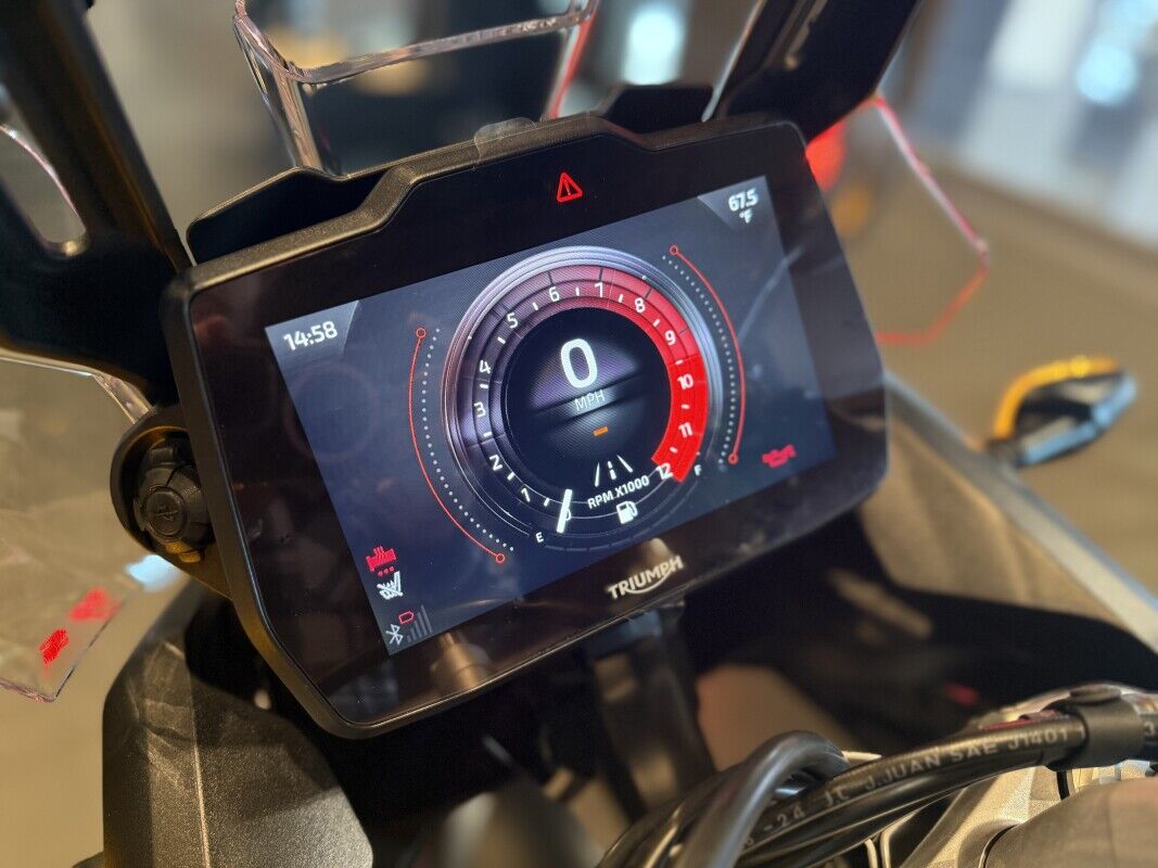 Adventure for your Soul Built to explore beyond the ordinary, Triumph Adventure motorcycles combine power, comfort, and control to take you anywhere the journey leads. From mountain passes to desert tracks, they’re engineered for riders who see every horizon as an invitation to go further. ADVENTURE VALUE BUILT IN Enhanced specification and premium components deliver refined performance at an outstanding price. SIGNATURE ALPINE STYLE Crisp Snowdonia White and Sapphire Black paint with Aegean Blue detailing create an elegant, road-adventure look. PERFORMANCE READY Akrapovič silencer and Marzocchi suspension, elevate control and rider enjoyment. PURE ROAD ADVENTURE Engineered for all-day touring comfort and confident performance across every mile of tarmac.