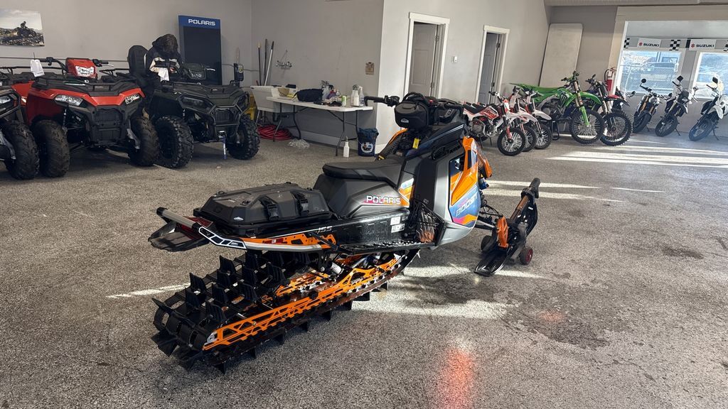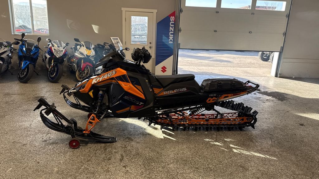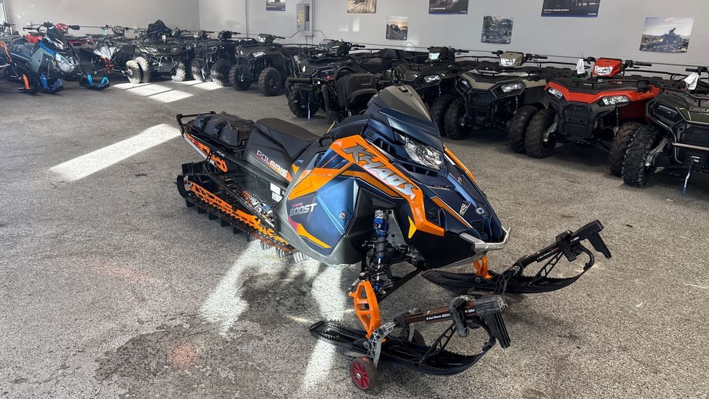 2026 Polaris® Patriot Boost RMK Khaos 155 Limited Edition 325 Bold, Dynamic, & Agile for All-Mountain Performance This limited edition features exclusive styling including premium Dream Orange Pearl & Matte Steel Blue paint with chrome decals to deliver a bold look in the backcountry. Features may include: Prepared for Backcountry Adventures Each RMK Khaos Limited Edition comes equipped with all-new Burandt Edition accessories including a front bumper for increased protection with reduced snow-build-up, an HD rear bumper that is 40% stronger, and a handlebar bag with a quick detach for convenience. Ultimate Backcountry Performance The RMK Khaos Limited Edition comes with the choice of a Patriot 9R engine for lightning fast response or the Patriot Boost engine for turbocharged power. Plus, choose between the 325 Series 9 track for ultimate deep snow performance or the 275 Series 8 track for versatile snow conditions. Float and Fly The RMK Khaos Rear Suspension features geometry that provides transfer and traction for light, playful handling, along with the best response and control in all riding zones. Available in 155 track length.
