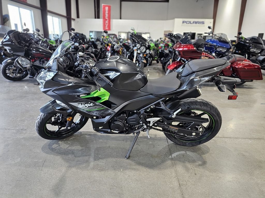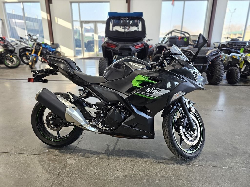 Used 2023 Kawasaki Ninja 400 ABS Motorcycle For Sale In Salt Lake City, UT This Pre-Owned 2023 Kawasaki Ninja 400 ABS Motorcycle is for sale at Karl Malone Powersports SLC conveniently located in Salt Lake City, Utah. Our knowledgeable team is eager to assist you, so don’t hesitate to contact us today to schedule an appointment. If this isn't the exact Kawasaki Motorcycle you're looking for don't hesitate to go back and revise your search. We're sure to have the perfect Motorcycle for you in our showroom in Utah. We invite you to visit us at Utah’s premier Kawasaki dealer for new and pre-owned Motorcycles for sale. Let us help you find the ideal Motorcycle to take home today! Karl Malone Powersports SLC Address: 1379 W 3300 S, Salt Lake City, UT 84119 Phone: (801) 972-8725 2023 Kawasaki Ninja 400 ABS SETTING THE STANDARD FOR EVERYDAY EPIC SPORT RIDING The Ninja® 400 sportbike offers the largest displacement in category at 399cc with the sophistication of twin-cylinder power. Approachable power, superb ergonomics and class-leading performance offer a smooth, manageable ride that's ideal for new riders while also alluring experienced riders. A low seat height and aggressive styling with LED headlights make the Ninja 400 the ideal choice for riders looking to enter the sport-riding scene. Features may include: POWER NEXT-LEVEL POWER The Ninja® 400 motorcycle engine delivers the perfect balance of high-performance thrills and easy-to-use power. HANDLING NIMBLE & AGILE The Ninja® 400 motorcycle’s chassis dimensions were designed to deliver confident handling with a modern sporty feel at all speeds. ERGONOMICS DESIGNED FOR COMFORT A sporty yet relaxed riding position accommodates a wide variety of riders and riding situations. STYLING SHARP & MODERN Aggressive Ninja® styling boasts high-class modern design with superb fit and finish inspired by the larger displacement Ninja supersport bikes. ADDITIONAL VEHICLE Uni-Trak® rear suspension 310mm semi-floating petal front disc brake Twin LED headlights High-grade multifunction dash instrumentation Available with Anti-Lock Brake System (ABS)