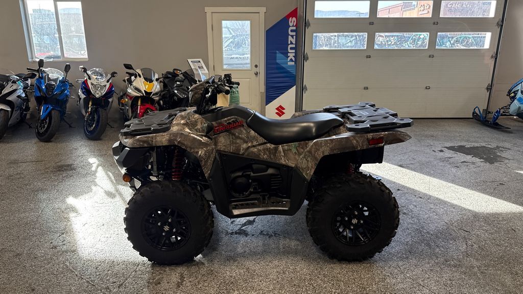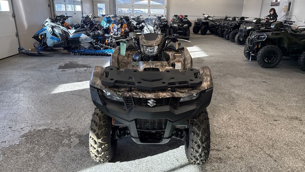2025 Suzuki KingQuad 750AXi Power Steering SE Camo Suzuki, the inventor of the 4-wheel ATV, has created the world’s best sports-utility quad with bold styling plus more capability and reliability than ever before. The legacy of the iconic KingQuad remains fresh and exciting, and is ready for you to join its history. Ready for your next adventure, the KingQuad 750AXi Power Steering SE Camo helps tackle challenging terrain with the capabilities that only a KingQuad possesses. Features may include: Engine The 722cc, DOHC, single-cylinder, liquid-cooled, four-stroke engine delivers strong low- to mid-range torque and impressive peak horsepower. The four-valve cylinder head has large 36mm intake valves and straight ports for superb cylinder charging efficiency. A sportbike-derived chain-and-gear camshaft drive system helps create a compact engine. Transmission The Quadmatic™ CVT-type automatic transmission provides versatility and convenience with a fender-mounted gate-type shifter for high/low range selection. Its advanced engine-braking system minimizes free-wheeling with the throttle off to help reduce speed when riding downhill. Chassis Independent double A-arm front suspension (6.7 inches of wheel travel) and the fully independent, A-arm/I-beam rear suspension (7.7 inches of wheel travel) use four large diameter, gas-charged shock absorbers with five-way spring preload adjustment. Electrical The multi-function instrument panel has excellent appearance and visibility and provides service reminders based on running time or mileage. The instrumentation includes LCD readouts for the speedometer, odometer, twin trip meter, hour meter, clock, fuel level, riding range, and drive mode. There are LED indicators for high, low, neutral, reverse, 2WD/4WD, and differential-locked 4WD and LED cautions for fuel injection and engine temperature. Body & Styling The bold, angular bodywork is coated in the outdoor-ready True Timber Kanati Camouflage pattern and features high-clearance fenders that offer great protection for the rider. Refined panels simplify maintenance needs, such as oil level checks and fuel and air filter service. Additional A variety of Genuine Suzuki Accessories are available, including winches, windshield, front and rear bumpers, quick-release snowplow, aluminum skid pans, rack extensions, utility box, and more.