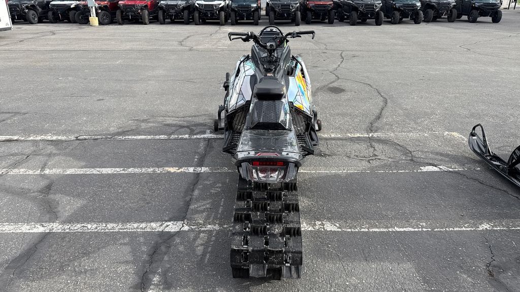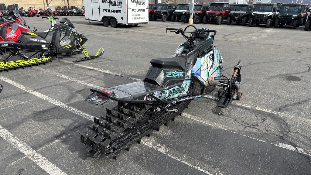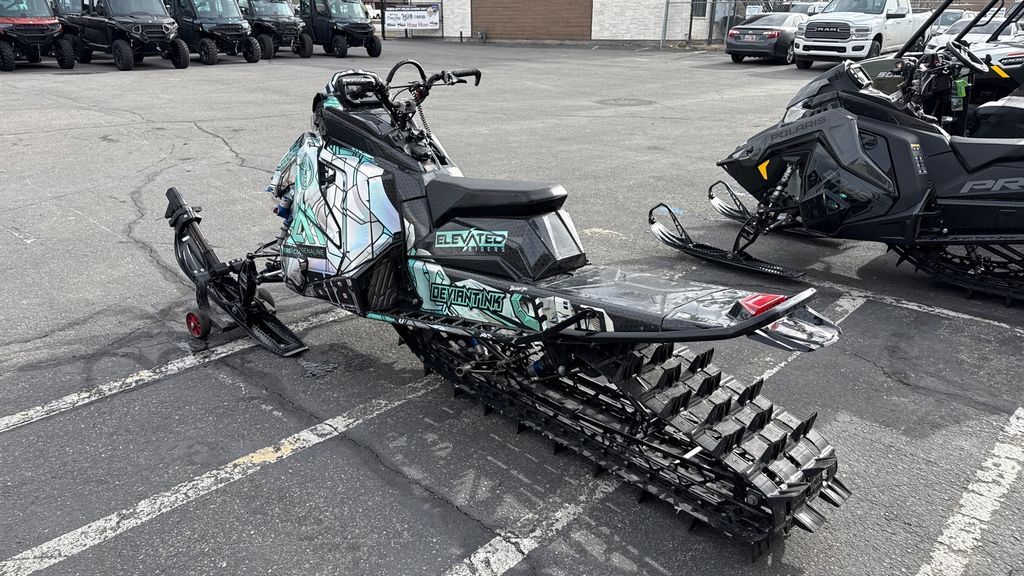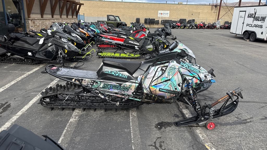 2023 Polaris® Patriot Boost RMK Khaos Slash 163 3" The World's Best All-Mountain Snowmobile Features may include: Ultimate Lift The Matryx Slash features a lightweight, tapered tunnel delivering unrivaled traction and lift in all conditions. RMK React Suspension The RMK React Suspension provides riders with the most precise and effortless ride in the deep snow. Effortlessly initiate sidehills and experience less fatigue with the most predictable ride. It includes a 36"-38" stance, a sway bar designed for predictable handling, and forged a-arms and spindles optimized for strength and durability. RMK Khaos Rear Suspension The new rear suspension geometry provides transfer and traction for light handling and control and the best response in all riding zones. Ultimate Control The slashed and tapered tunnel features drastically improved snow clearance, minimizing drag and maximizing control on the most insane slopes. A new centralized, lightweight cooling system, bonded carbonfibre and aluminum-forged components significantly cut the real-world weight of the sled, maintaining the highest level of flickability and delivering class-leading power to weight ratio. Centralized Cooling System The lightweight cooling system reduces ice and snow build up, working with the short, tapered tunnel. Not only is the dry weight reduced, the real world weight of the sled through the snow is reduced. 7S Display Plan, track, and share your ride with the industry-leading 7S Display with Ride Command Technology. The 7-inch glove touch display is purpose bulit for snowmobiles, with on board diagnostics, trail maps, points of interest, and vehicle to vehicle Group Ride technology to see your ride group with or without cell coverage. Walker Evans Racing Suspension The RMK Khaos Sash is equipped with premium Walker Evans Racing Velocity shocks for the best of the best in various mountain conditions. Complete adjustability to dial in the ride with high and low speed compression adjustment.
