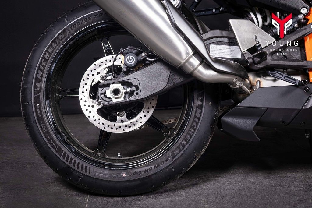 The 947 cc, parallel twin LC8c has been harnessed even further thanks to a tweaked engine map and 100% full throttle opening position to suit the needs of the KTM 990 RC R and the most compact twin in the segment. The impressive engine breathes through a new stainless steel, centralized exhaust muffler, which also helps to urge the whole show to gobble straights and slice corners.