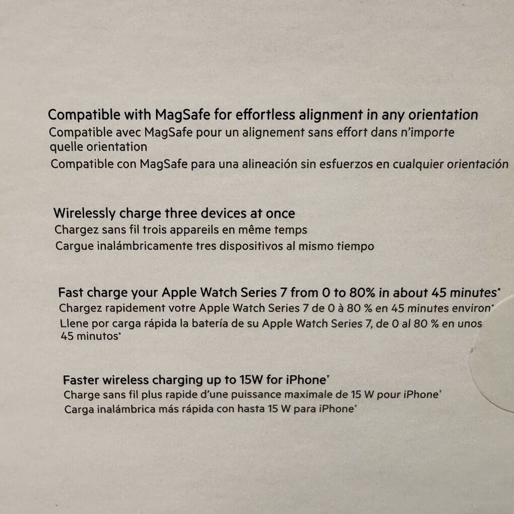 Belkin 3-in-1 wireless charging stand with MagSafe. I’ve had it for about a year and it’s been lightly used and well taken care of. Works great — I just decided to go a different direction with my charging setup.