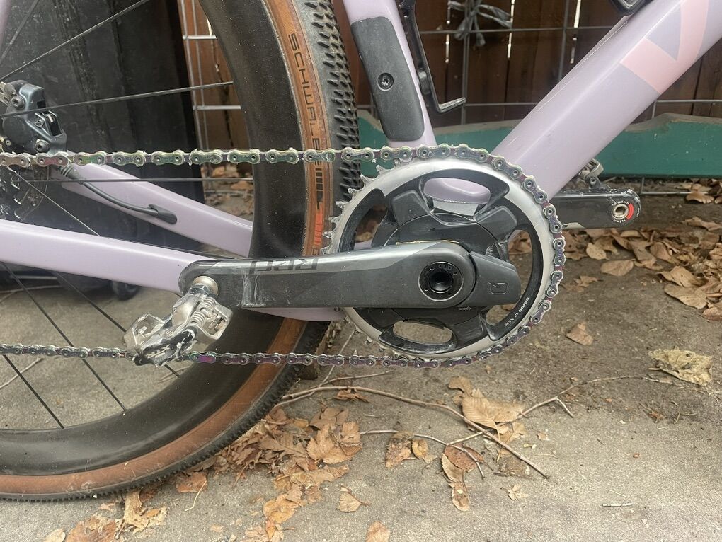 ZelleFantastically fun gravel bike. Top shelf build. Some mud got caught on the tire and rubbed some paint off the inside of the chainstay.