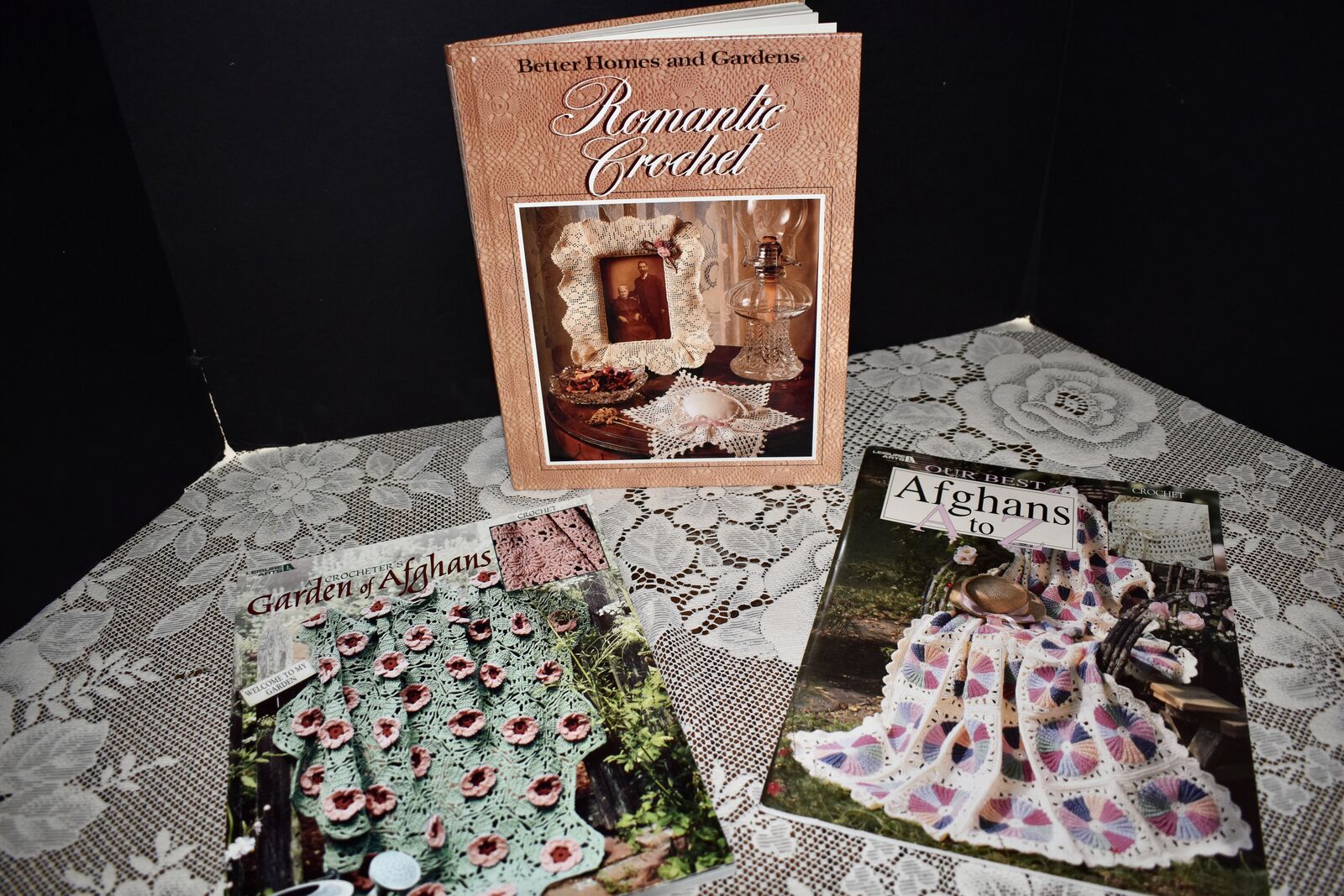 ***We Have… that we are selling at this time in this listing…THREE ( 3 ) SEPARATE CROCHET AFGHAN BOOKS FILLED WITH SO MANY WONDERFUL IDEAS AND FUN PATTERNS WITH THINGS TO MAKE IN EACH OF THESE REALLY GREAT BOOKS.