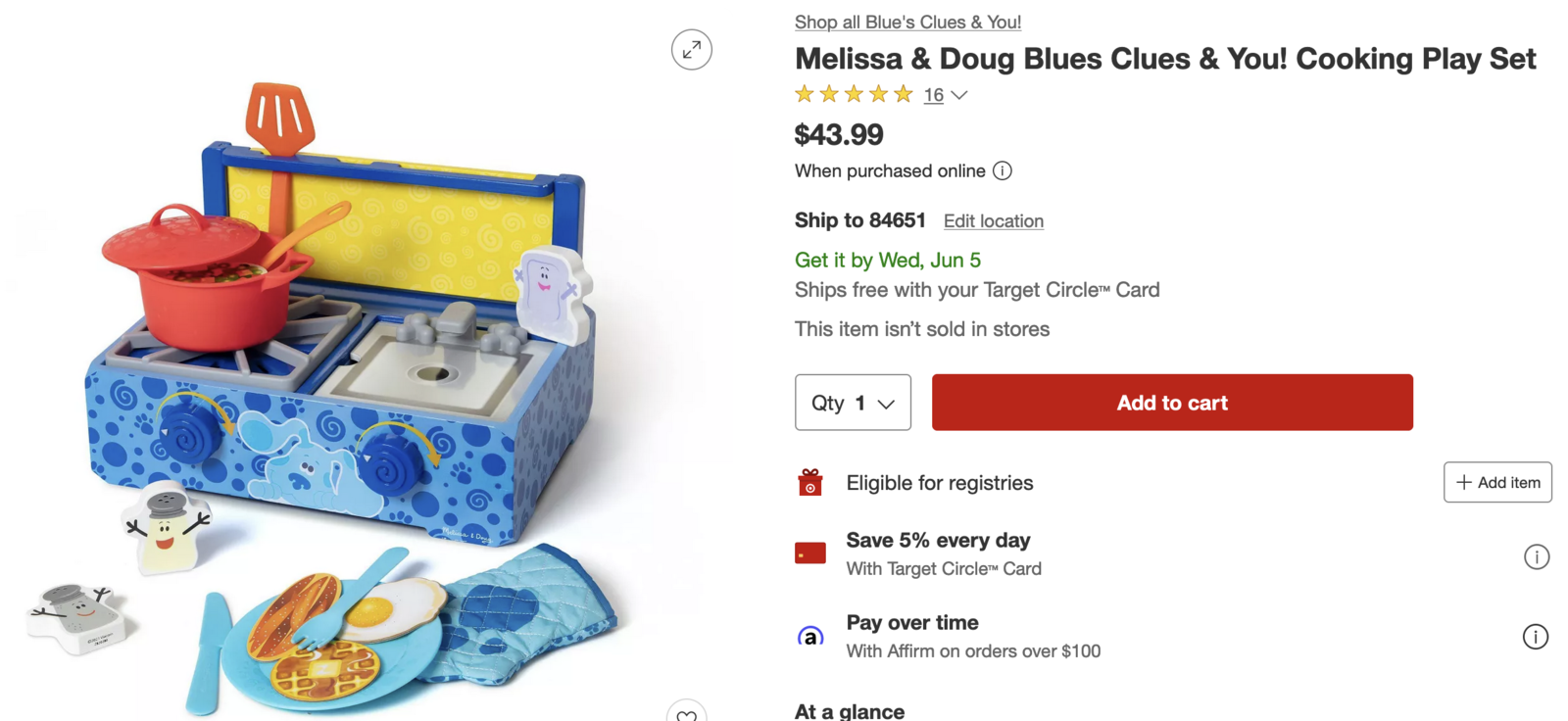 Imaginative Play: Join Blue and her friends to cook up imaginative play food fun with a wooden stovetop, utensils, and wooden Blues Clues & You! character play pieces.
