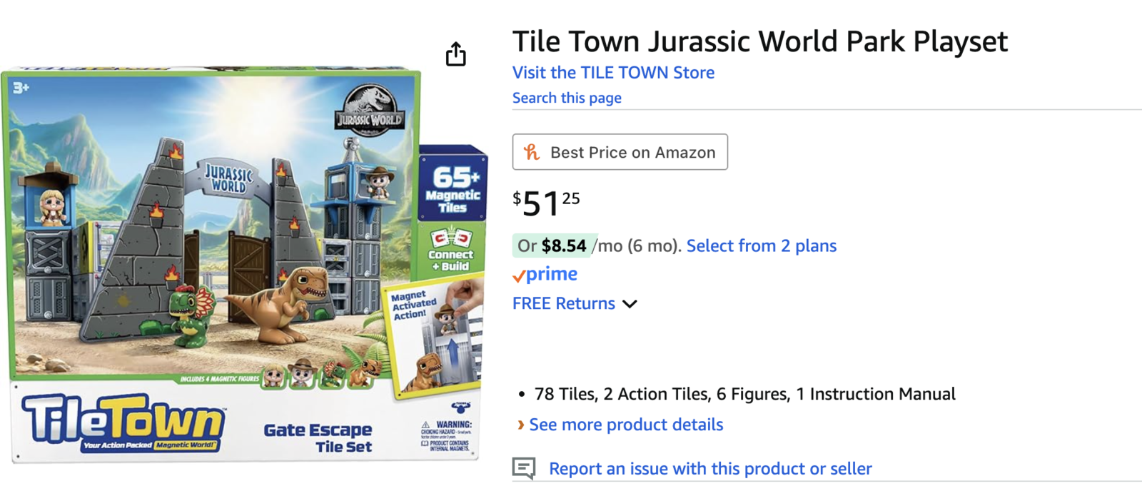 Dino Escape Magnetic Play Set: Bring your character-driven, imaginative world to life for creative building and playtime fun with our dinosaur magnetic tiles set; this magnetic tile animals set includes 76 tiles, 3 action tiles, and 5 figure