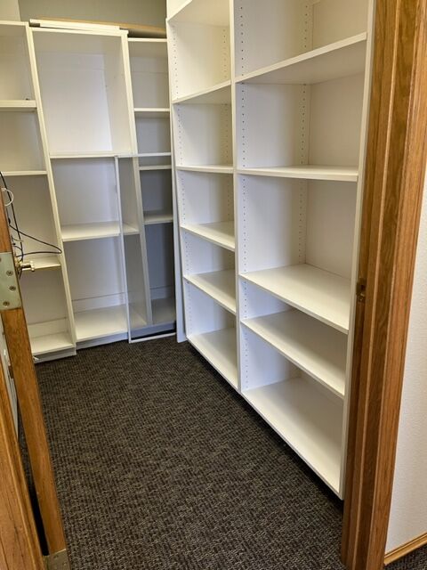 This flexible fuite of offices comes with a front reception area and two storage closets and can be configured as follows:
