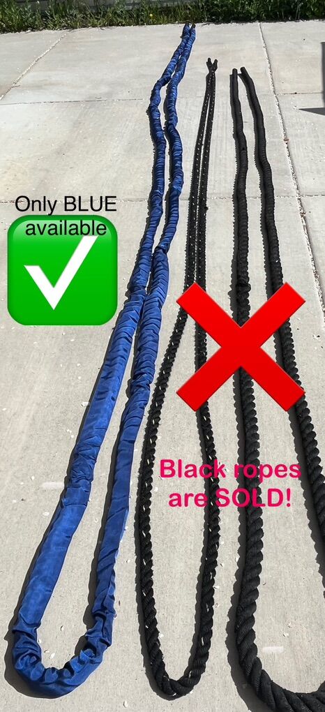 BLUE Battle Ropes (Semi New) -NO black ropes available. $60 - 1.5” Thick, 40’ Long $50 - 1.5” Thick, 30’ Long