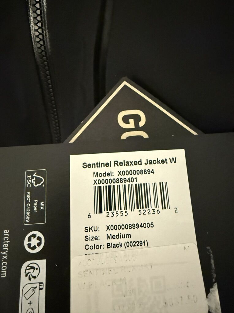 VenmoBrand new with tags women’s Arc’teryx Sentinel Jacket Shell. Size medium and color black. Relaxed fit (oversized, fits like a large or xl). Originally $750 + tax.