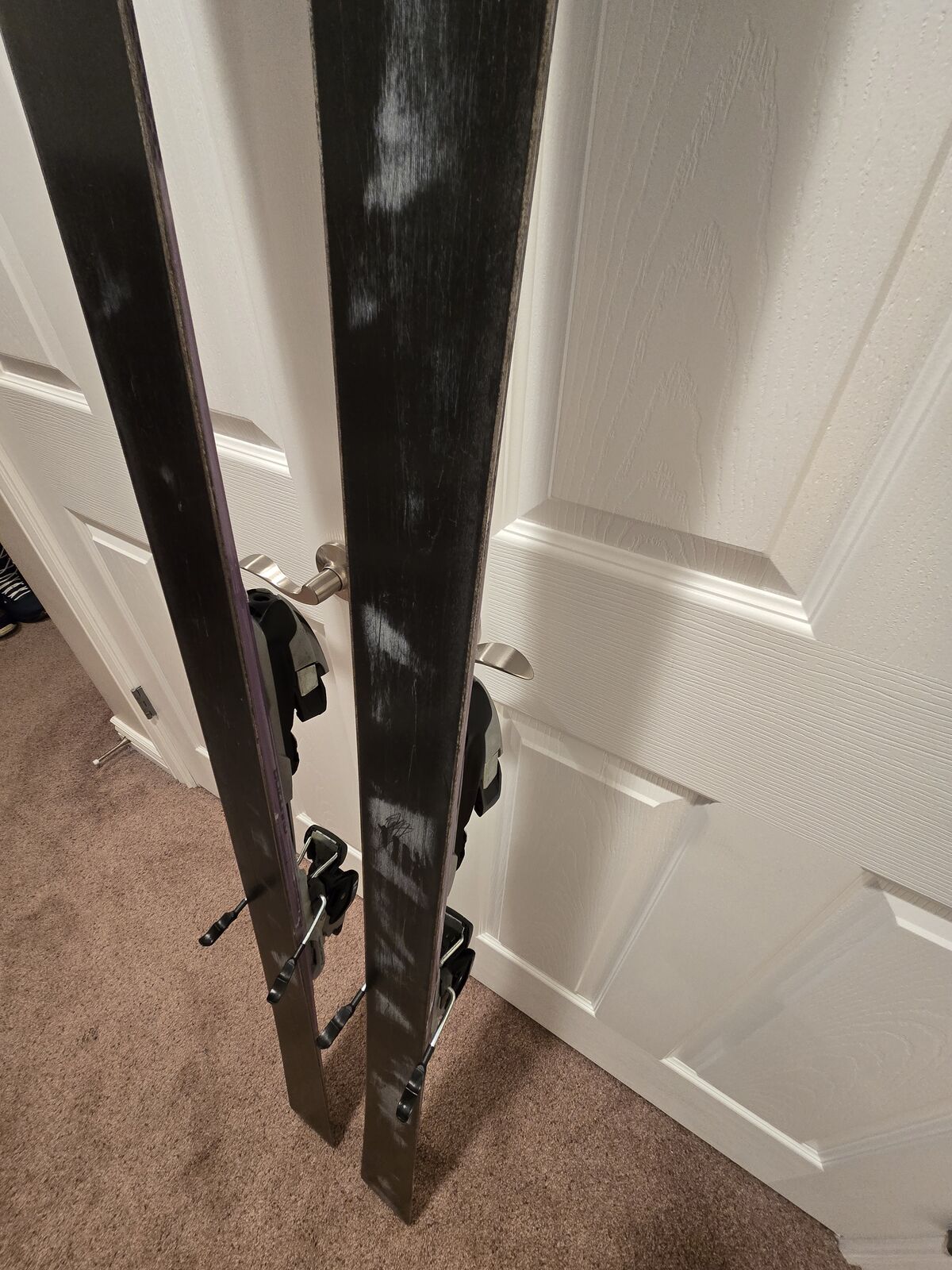 Overall good shape, normal light scratching, but nothing bad at all. One tiny ding that is a little deeper but not much, shown in last picture. They still run incredibly smooth with sharp and straight edges. High quality Marker M1000 Adjustables make this a solid package.