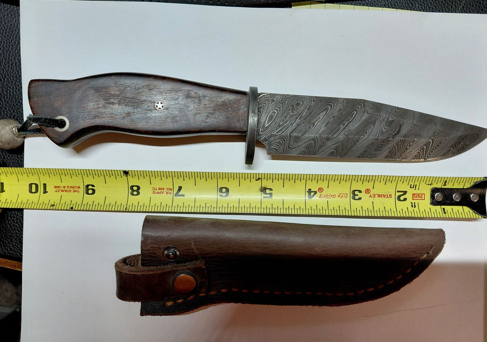 VenmoCustom Damascus hunting knife. I've had this knife for several years and it's been a safe queen. I received this in a gift exchange with another knife maker. It is in excellent condition and would be a great addition to a collection or to use in the field.