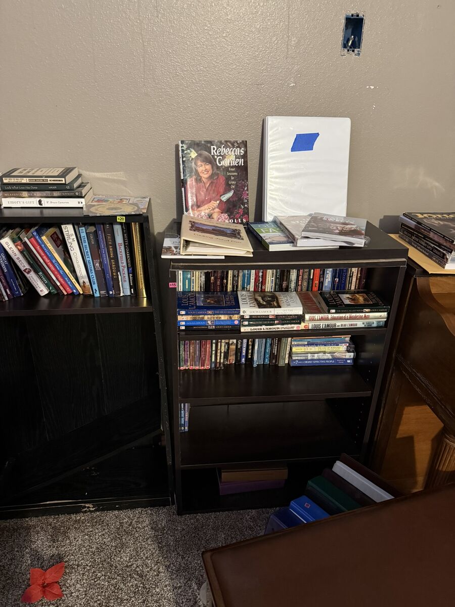Venmo5 shelf 68x28x12 $15, (2) 5 shelf 68x25x9 $15, 4 shelf 36x24x12 $12, 3 shelf 40x25x10 $10, 3 shelf 36x25x12 $10 or $75 for all