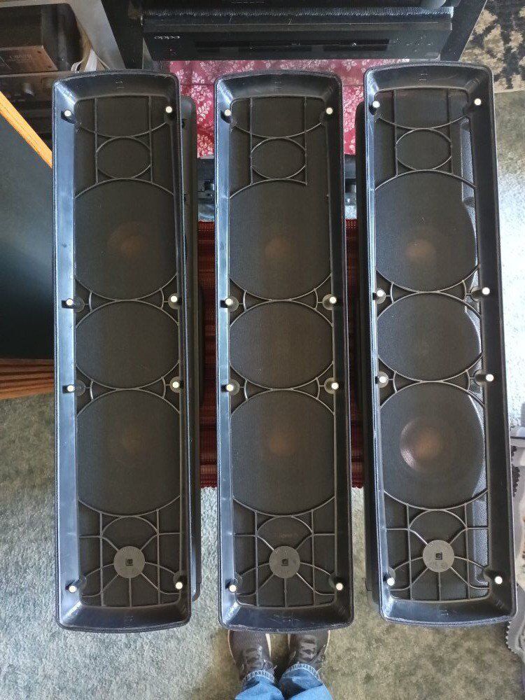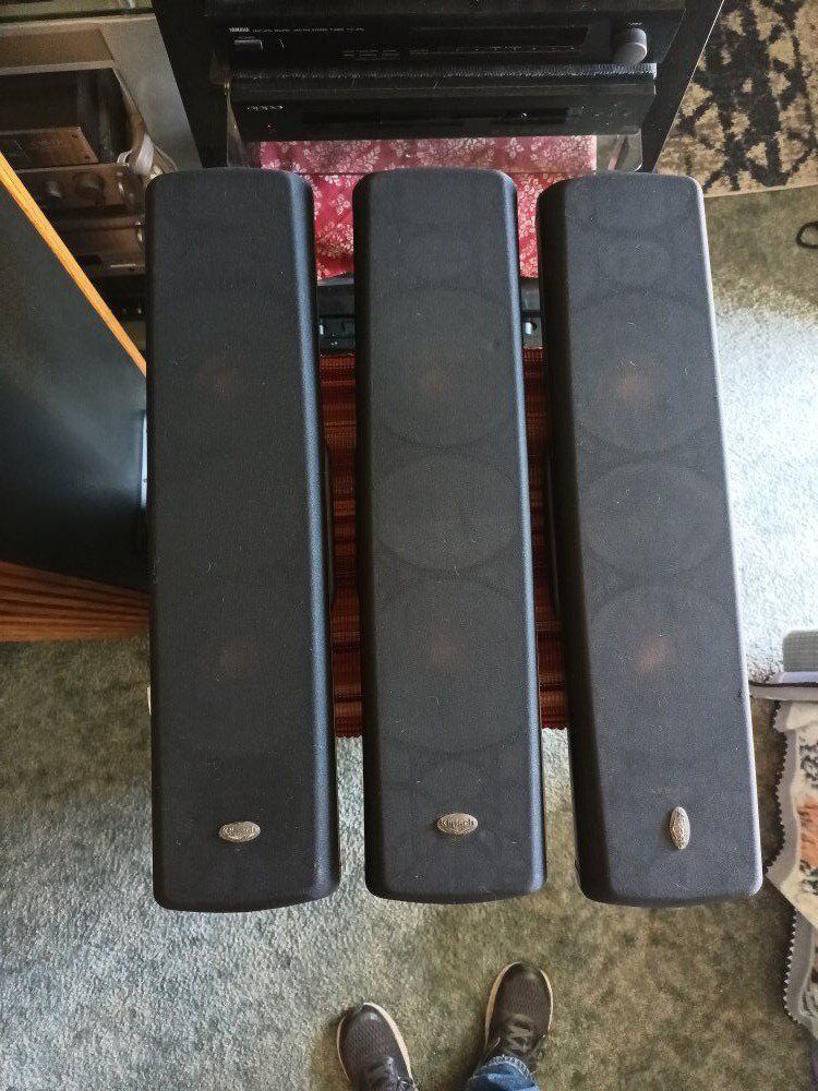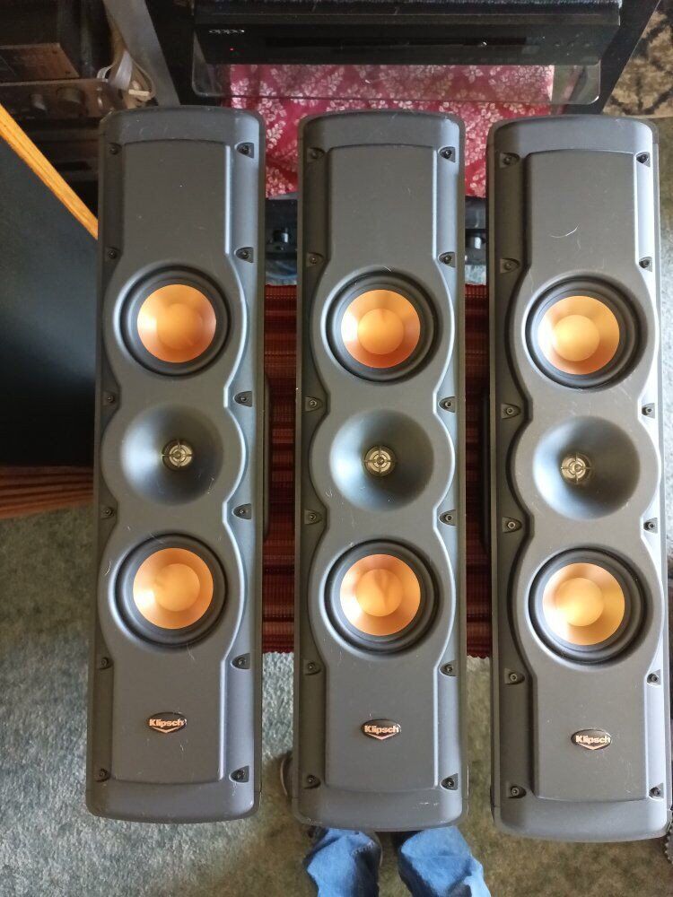 KLIPSCH RVX 42, L-R-C, switch for on wall of wall, 8 OHM, 75 watts, slim hi performance on wall speakers, to match flat panel tv,s, 4' dual ceramerallic woofer's, and 1' titanium tweeter, with a tratrix horn for clear efficient sound. ( NO STANDS ). CASH ONLY