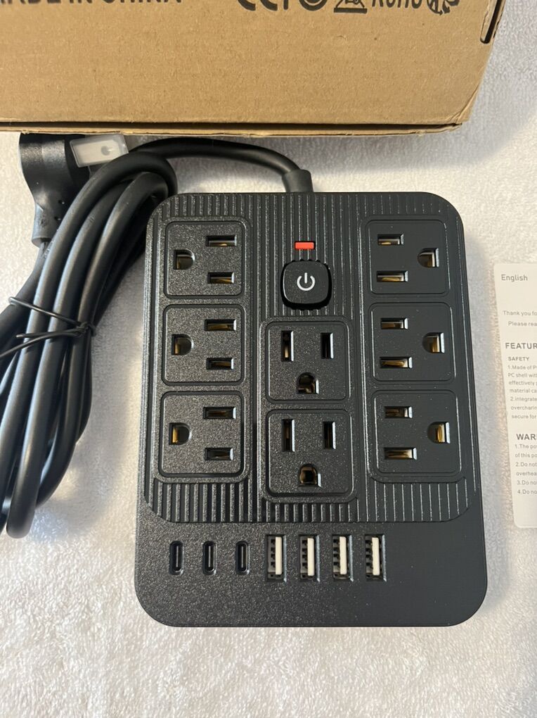 ZelleBrand new….15-in-1 Multi-Port Power Strip Outlet Surge Protection 8 Outlet 4 USB 3 C Port