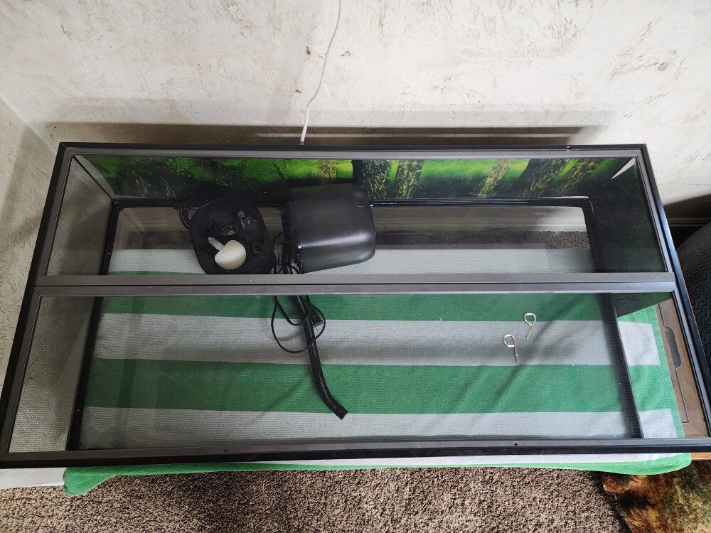 Venmo48" L x 24" W x 10" H Long shallow terrarium. Perfect for Tortoise, lizards, etc. Easy access slide mesh top held by pins.