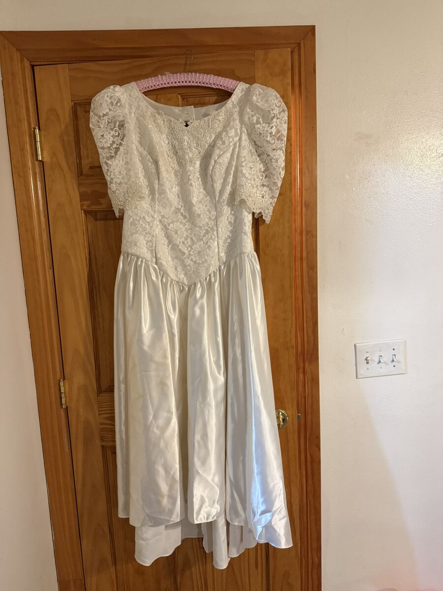 VenmoBeautiful cream colored satin and lace prom dress, only worn once, size 16 I think.
