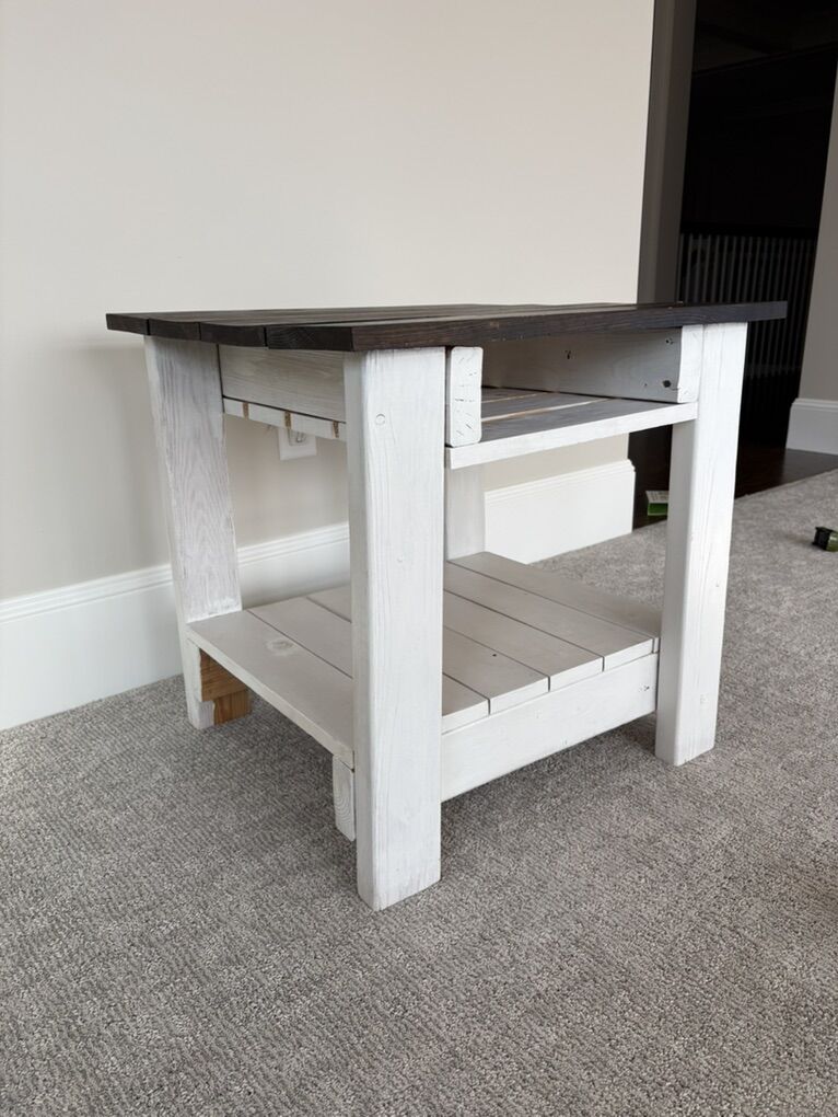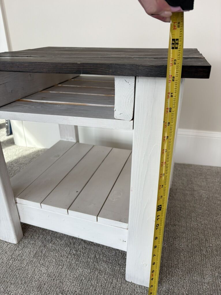VenmoThis side table is a great little project piece. It is handmade, solid wood. I stained the top and painted the bottom but it needs refinishing. It is super sturdy. 22” L x 24” W x 23” H Pickup in Holladay
