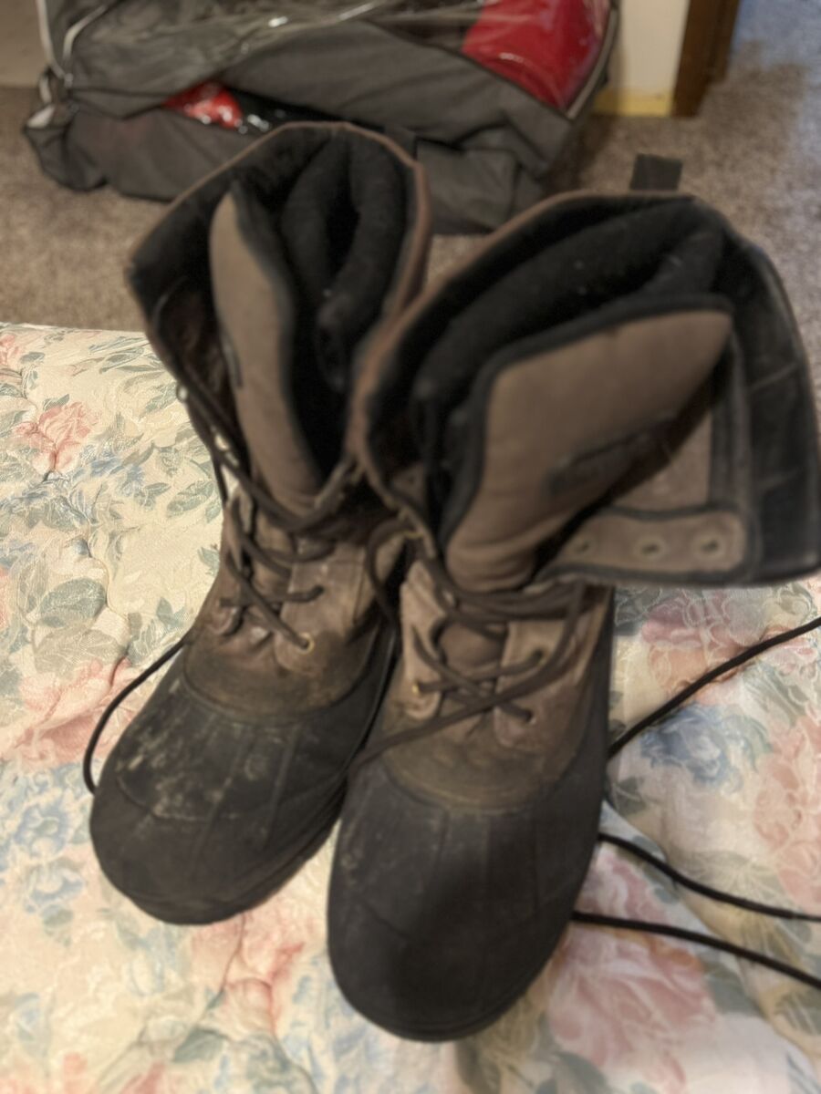 VenmoI have five pair of good quality wook boots with plently of wear left in them. My husband did not scrimp when it came to having rugged comfortable work shoes. $15 each. Size 10-11.