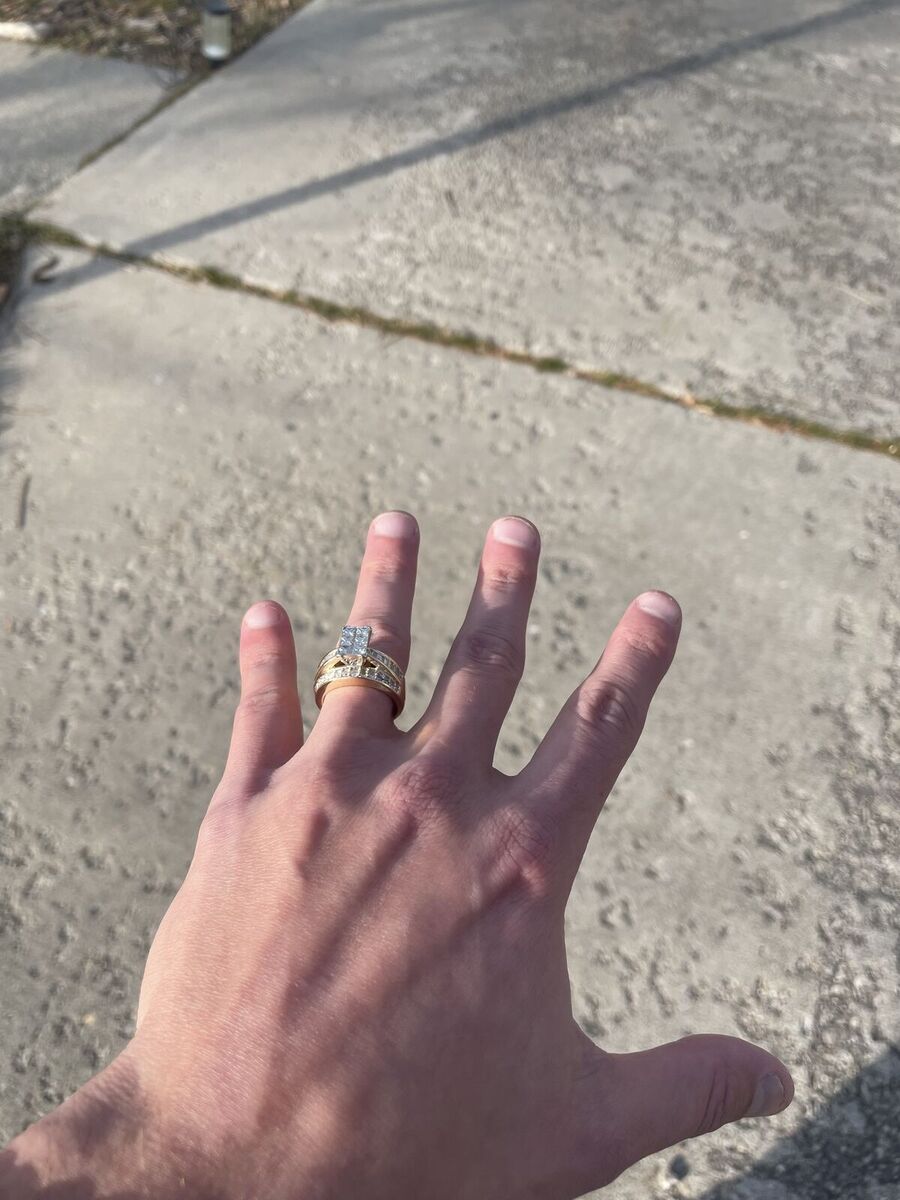 Center: 2 Carat Princess-cut natural diamonds in a square composite setting, verified by multiple local jewelers. Accent stones: Baguette and round-cut accents (accent stones are not natural diamonds). Metal: 14k yellow gold Ring size: 7.5****Condition: Excellent / like new Selling because it was a family ring that won’t be used. Asking $3,250 OBO. Serious inquiries only please.