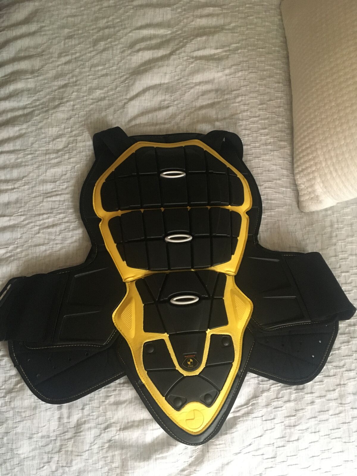 VenmoSpidi Defender Armor. Chest and back protector for motorcycle riding. Chest protector is CE level 1 and back protector is CE level 2. Adjustable velcro siding and shoulder straps. Low profile enough to be worn under a jacket or fits easily over a hoodie. Super comfortable any way you wear it. Size medium chest 31.5" to 39.5".