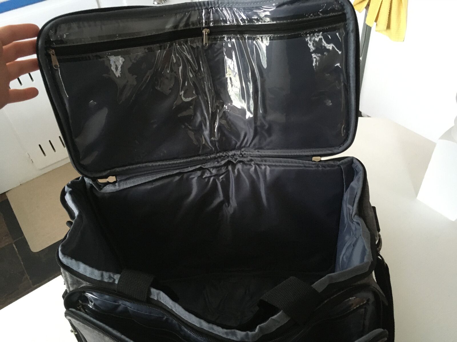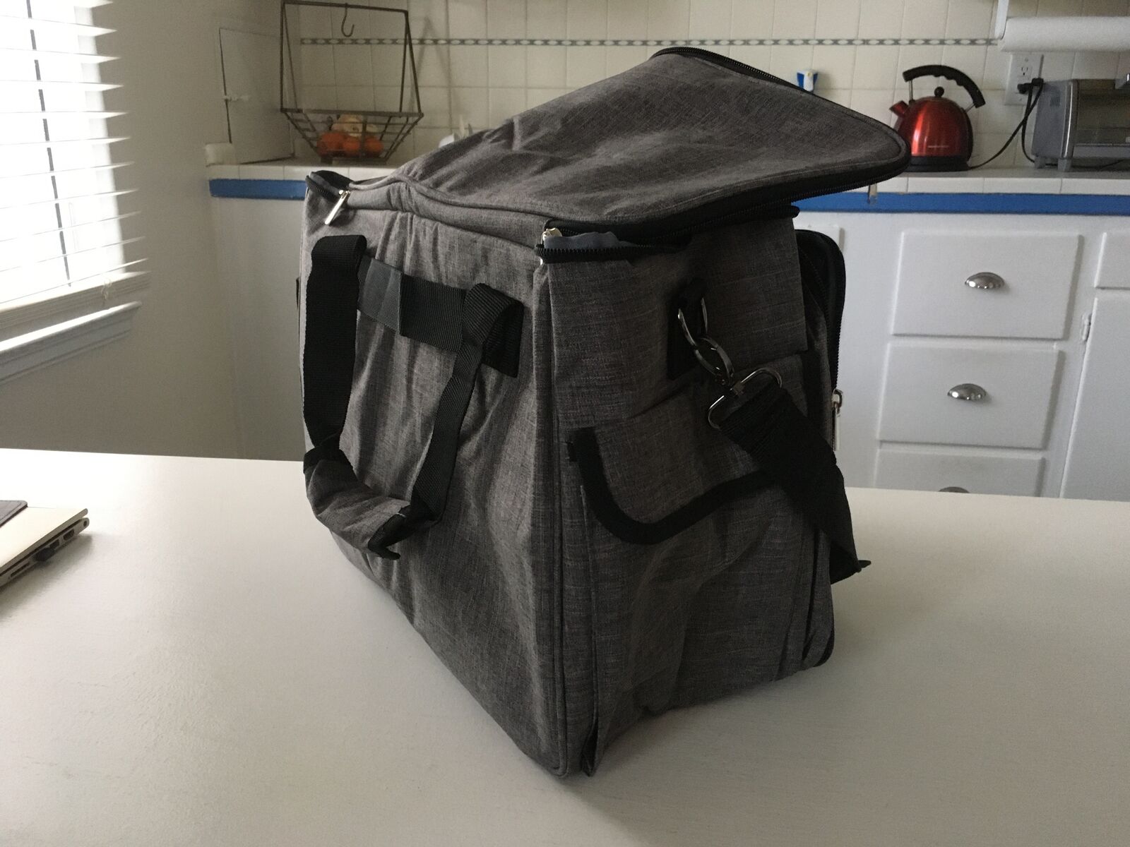 VenmoSewing machine carrying case made by Homest. Padded with a bunch of pockets and accessory slots. Fits most standard sized sewing machines, compatible with Singer, Brother, and Janome.
