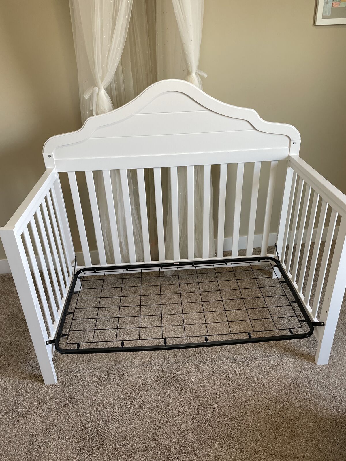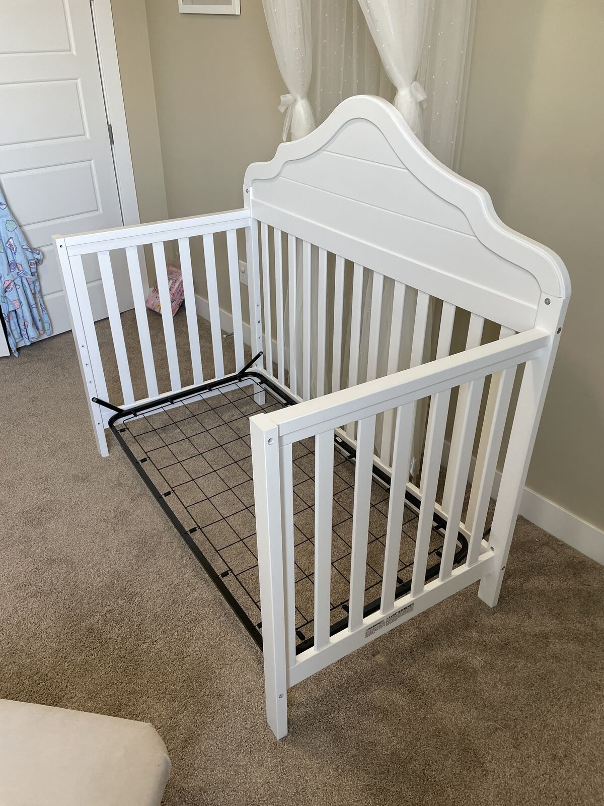 VenmoThis bed is awesome! It can be a crib, then converts to a toddler daybed, then a full bed. It has been a very sturdy, beautiful bed for our daughter, but she wanted something new. It is in almost perfect condition (2 spots on the back of the headboard scratched while tightening screws). This bed has all the parts needed and has been dismatled ready to go! It comes with a free waterproof crib mattress (covered with a mattress protector always when in use).