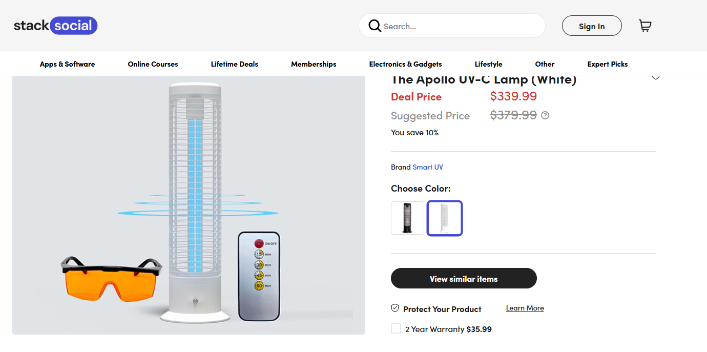 Smart UV Apollo UV-C Sterilization Lamp in good working condition.