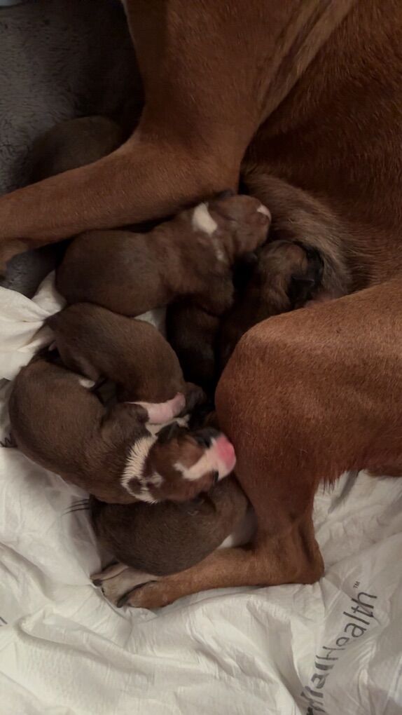 ZelleMeet Walley, a 6-year-old boxer. He is a proven stud. He has a strong, balanced structure with excellent muscle tone and throws out lots of healthy pups. He is very friendly and loves kids and other dogs. He weighs around 60lbs. We can do a contract for pick of the litter or a $150 stud fee.