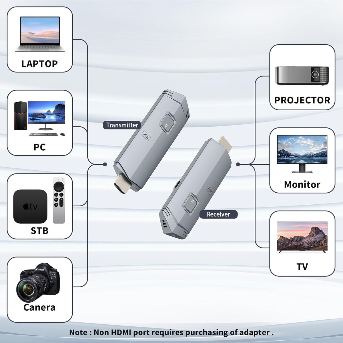 NEW IN BOX! Wireless HDMI Transmitter and Receiver, HDMI Wireless Extender Portable 4k Plug & Play, Support 2.4/5GHz for Streaming Video and Audio to Monitor from Laptop/Pc/Tv Box/Projector